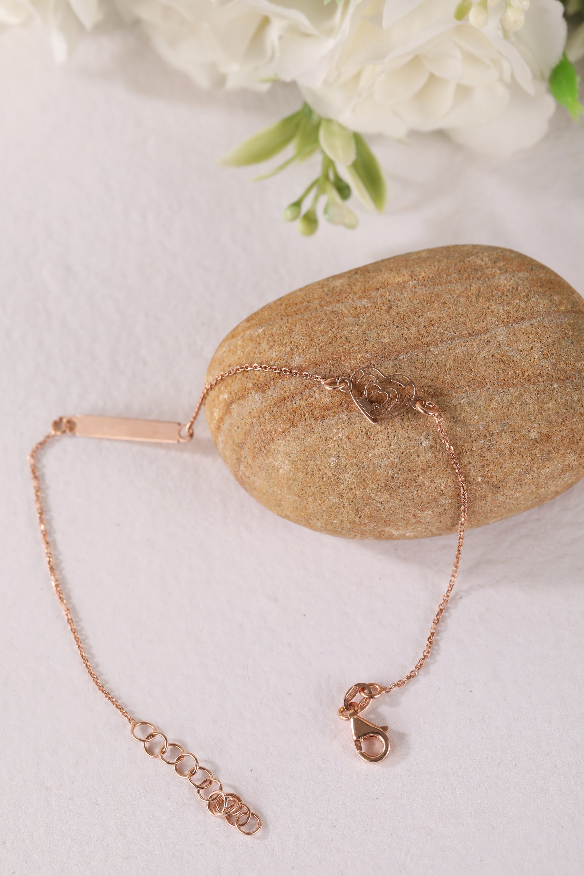 Introducing our "Whispering Love" Rose Gold Heart Bracelet, meticulously crafted in 925 silver. Embrace elegance with its unique hollow heart design, a minimal masterpiece that effortlessly blends sophistication with contemporary charm.