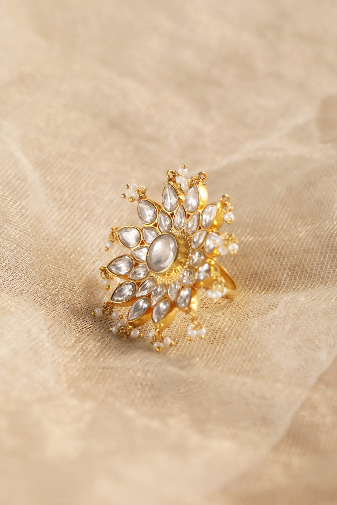 Elevate your glamour with the 'Amira' cocktail ring. This extravagant Indian masterpiece commands attention with...