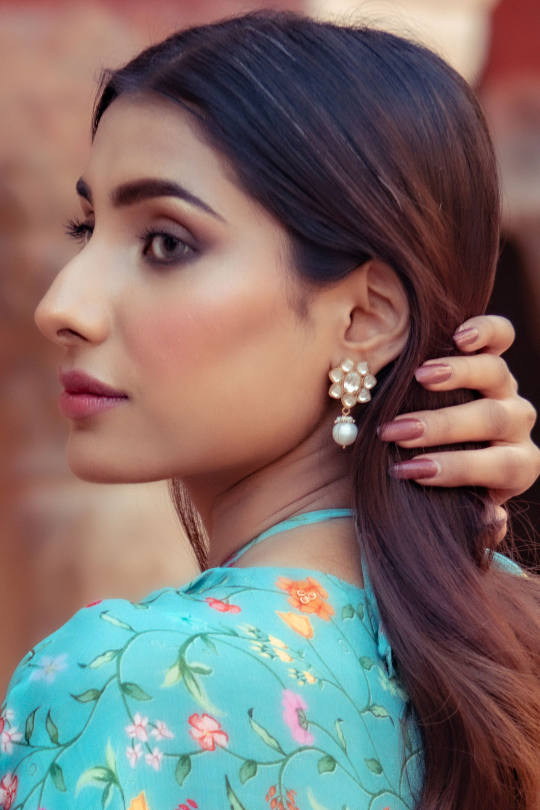 Introducing 'Aakriti' earrings, a harmonious blend of elegance and charm. The round flower drop, embellished...