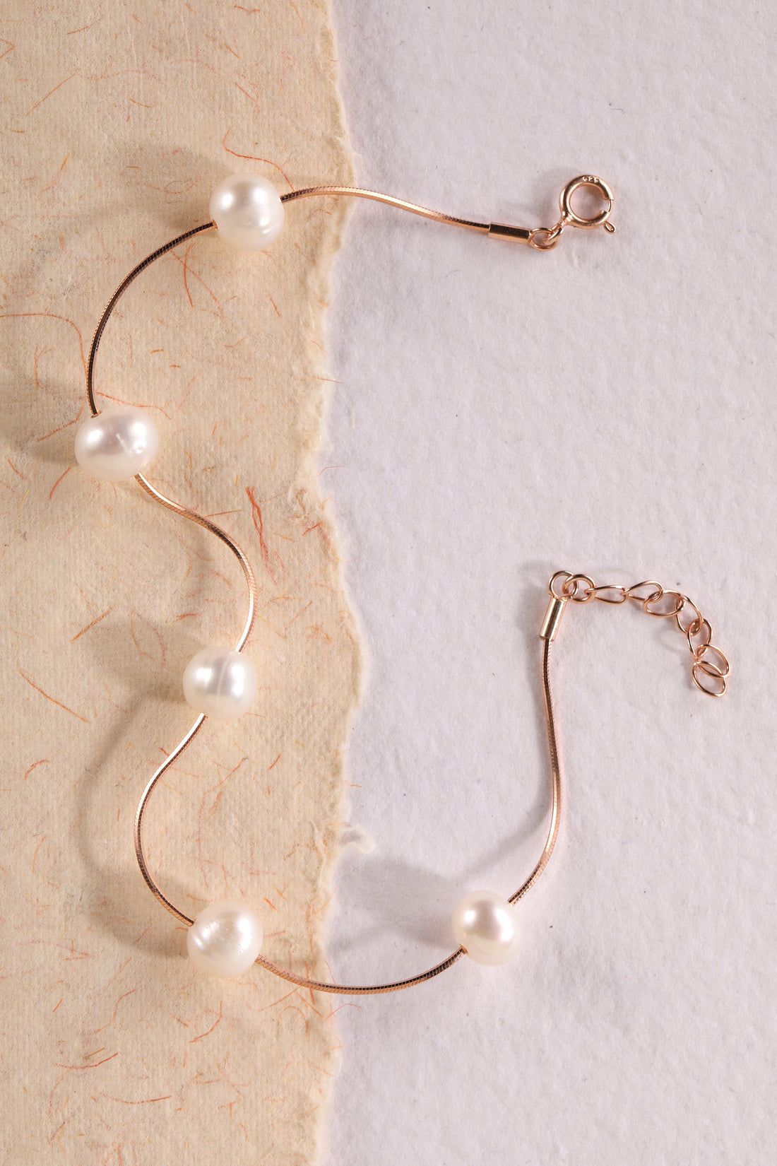 Elegance meets sophistication in our rose gold silver wire bracelet adorned with lustrous cultured pearls....