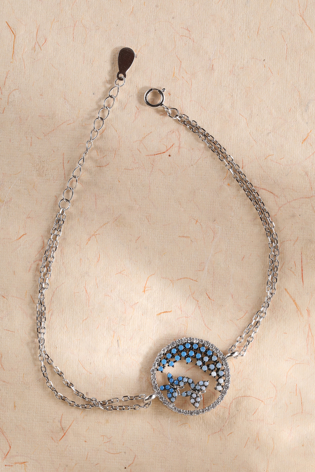 Elevate your daily style with our Women's Silver Bracelet featuring a delicate blue butterfly charm....
