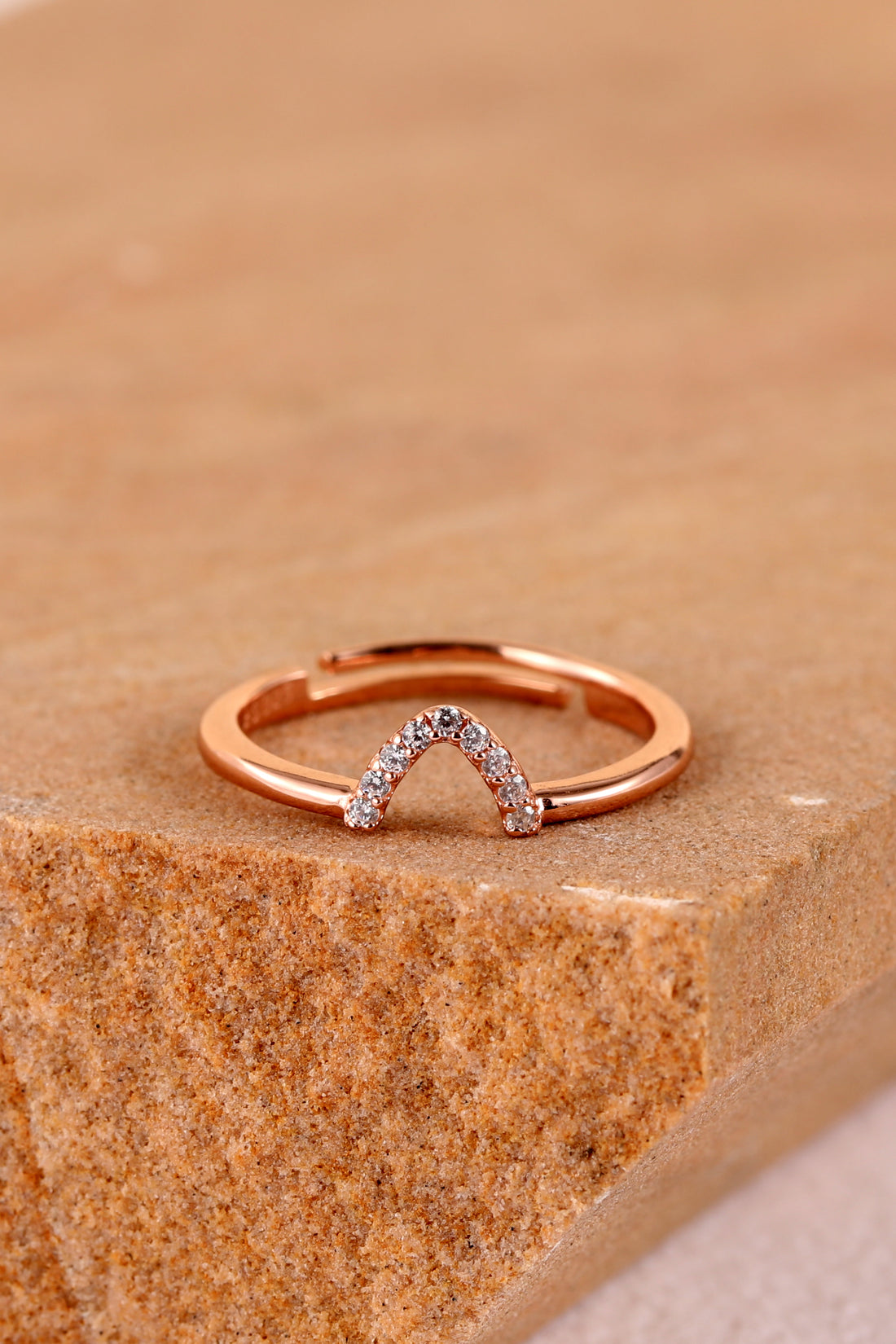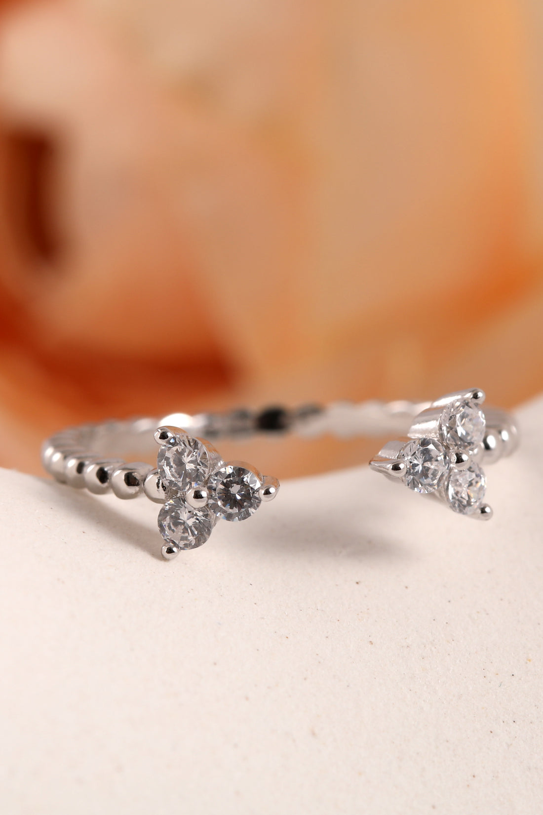 Introducing our elegant Front Open Silver Ring, featuring two parallel layers in a captivating rose...