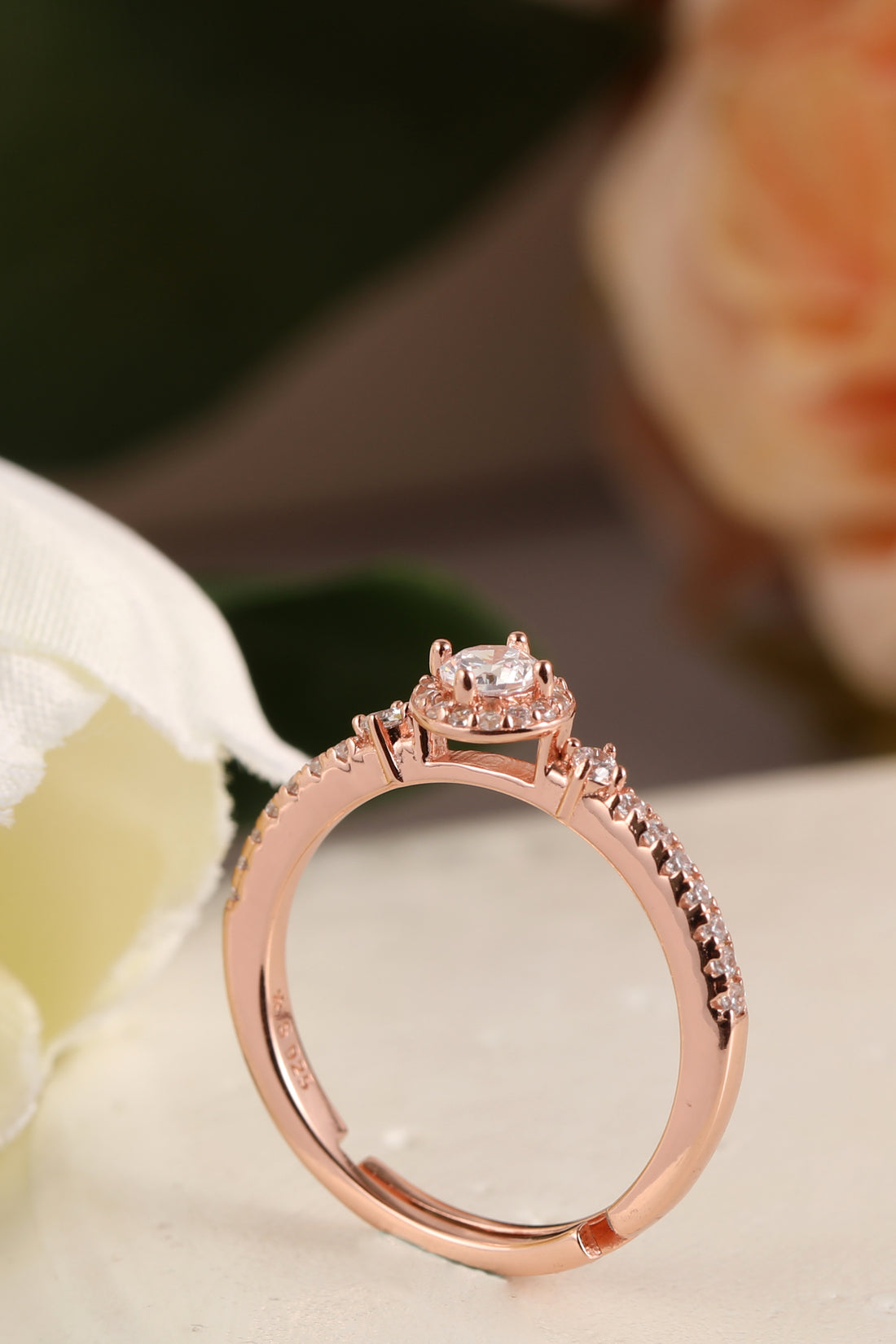 Introducing the "Luna" ring, a stunning silver ring with a rose gold finish. Its centerpiece,...