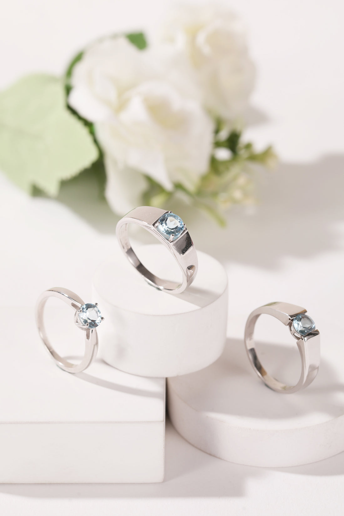 Elevate your love with our Sterling Silver Blue Topaz Ring, a dazzling expression of affection....