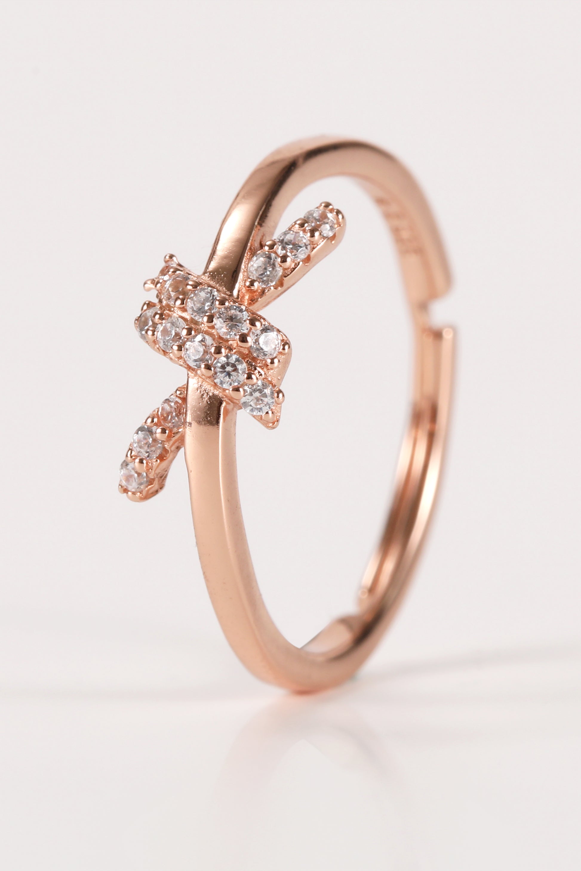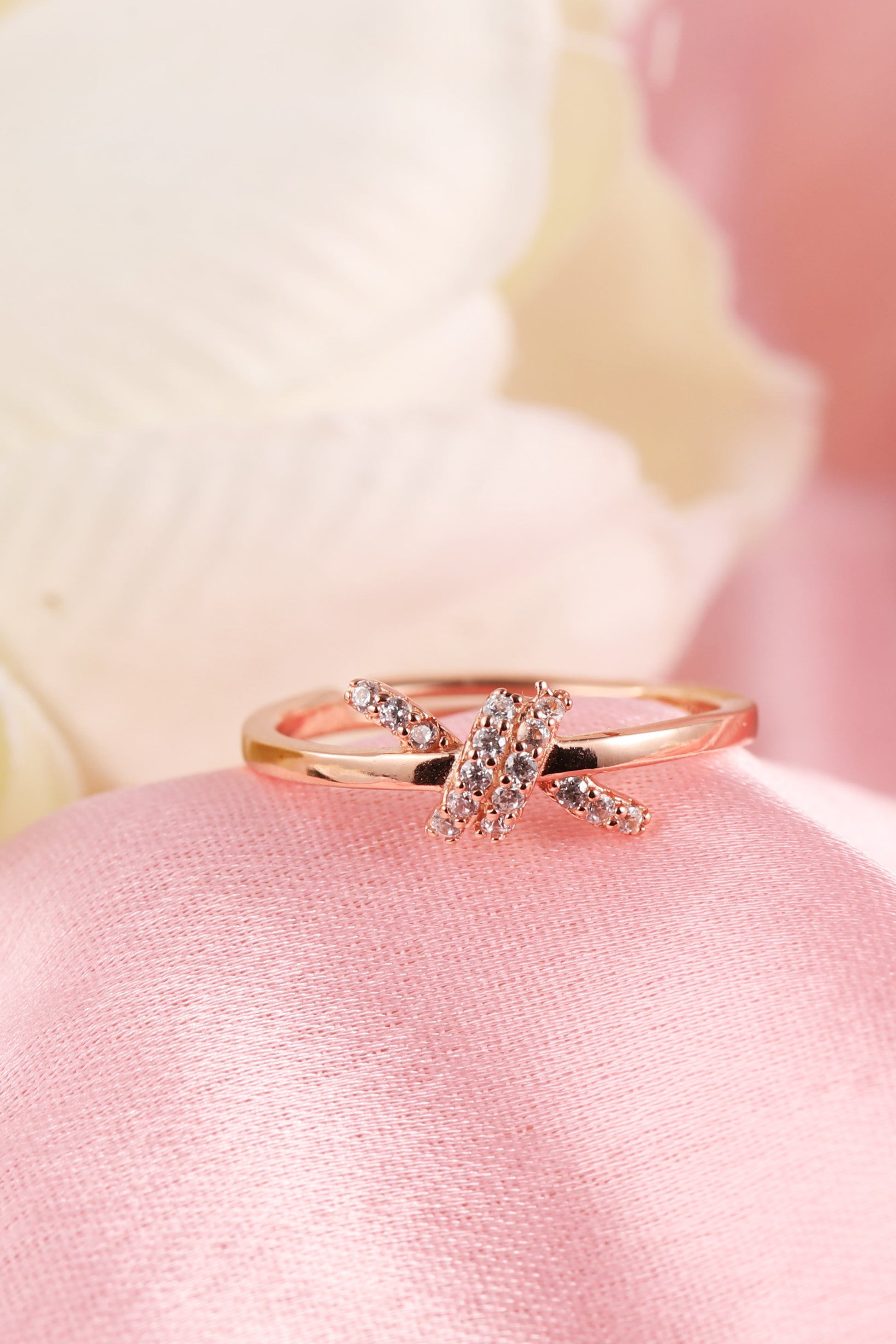 Styling Tip- Enhance your style with the Love Knot silver ring in a rose gold finish. Its timeless knot design suits any occasion. Wear solo or stack for a chic, sophisticated look.