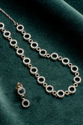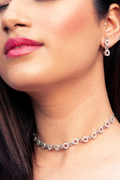 Styling Tip- Enhance your aura with our crystal earring and necklace set. Pair it with a saree for a stunning traditional look, or with any outfit to exude timeless elegance.
