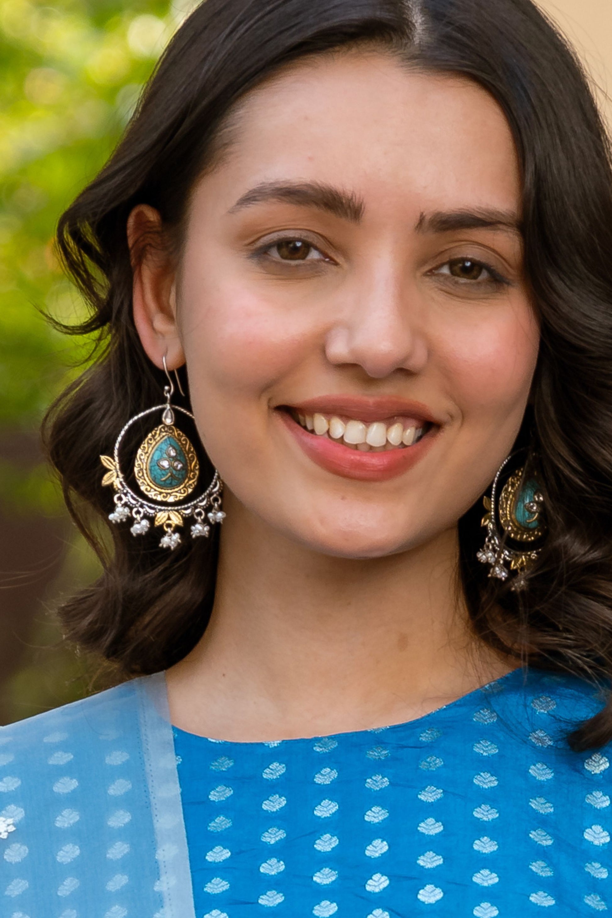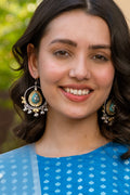 Styling Tip- Elevate your college or office look with the Nitara Earring. Pair it with a white blouse and jeans for a pop of color, adding a touch of sophistication to your daily style. The vibrantly-colored dangler with kundan and pearls is the perfect statement piece to make a fashionable impression.