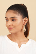 Styling Tip- Elevate your style with 'Aakriti' earrings. The floral round drop with pearl tassels adds a touch of grace. Perfect for ethnic occasions, pair them with sarees or traditional outfits.