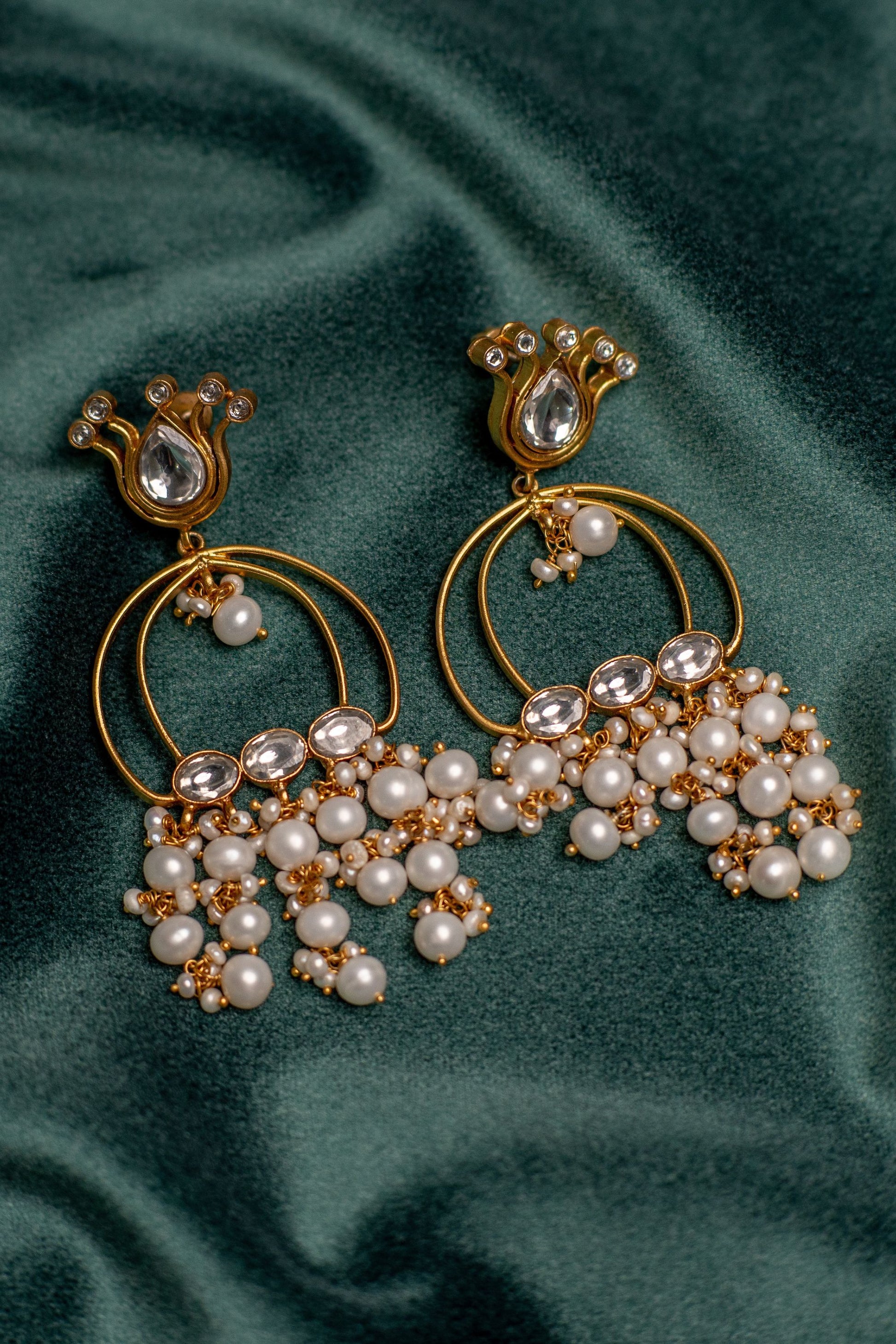 Adah, meaning "ornament," perfectly encapsulates these exquisite lotus-themed silver dangler earrings. With lustrous pearl accents and a radiant gold polish, they embody timeless elegance for traditional adornment. These beautiful earrings feature a traditional Indian design with a modern twist, complete with a pearl hanging for a touch of elegance.