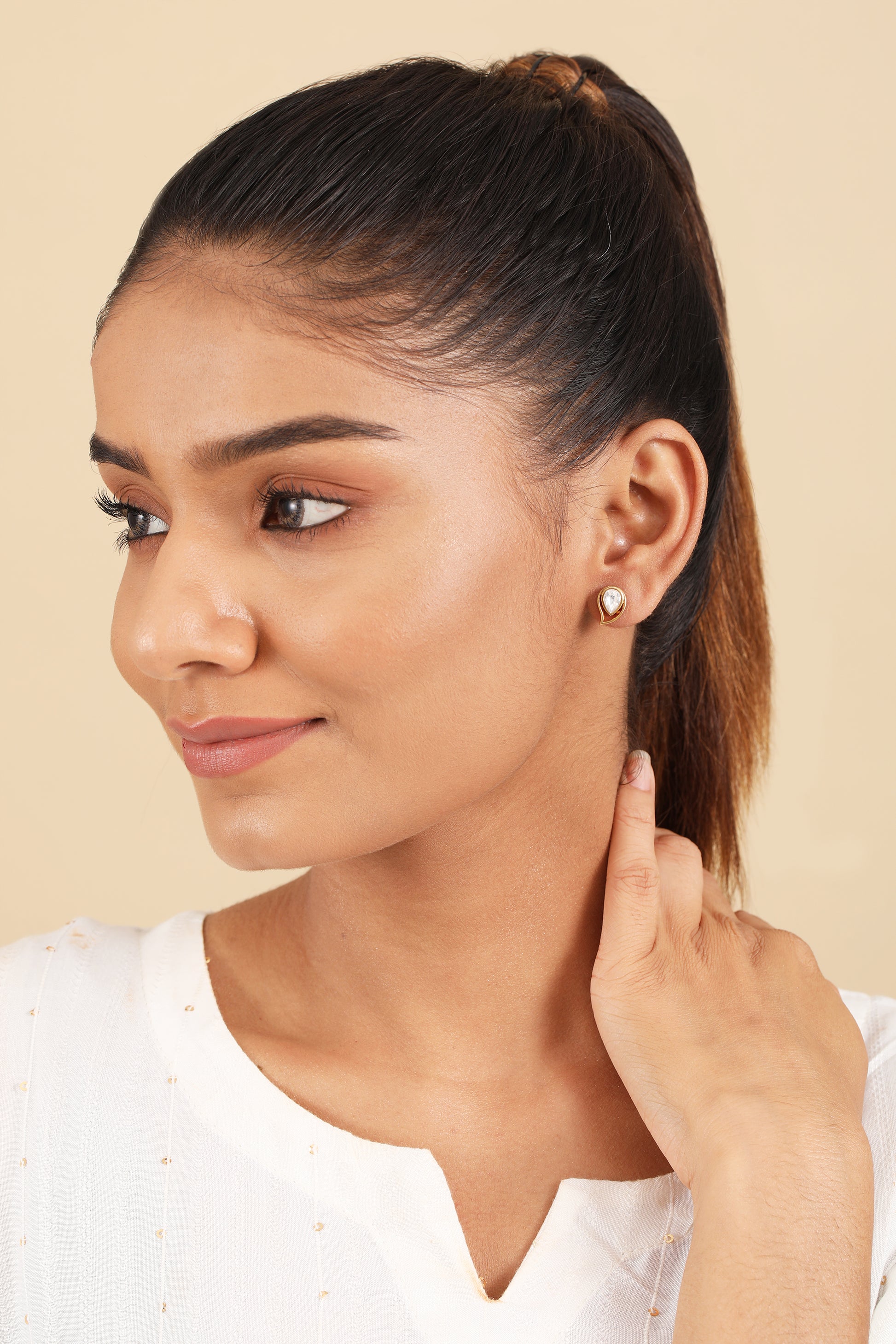 Styling Tip- Enhance your everyday elegance with 'Amaira' gold-plated stud earrings in 925 sterling silver. Perfectly minimalist, they effortlessly elevate casual or formal looks, making them a versatile wardrobe essential.