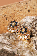 Introducing our enchanting stud earrings, crafted in 925 sterling silver. Featuring a delicte flower design made with blue synthetic stones and a stunning polki motif at the bottom, these earrings evoke the serene beauty of a flower on the moon. Perfect for adding a touch of celestial elegance to any esemble.