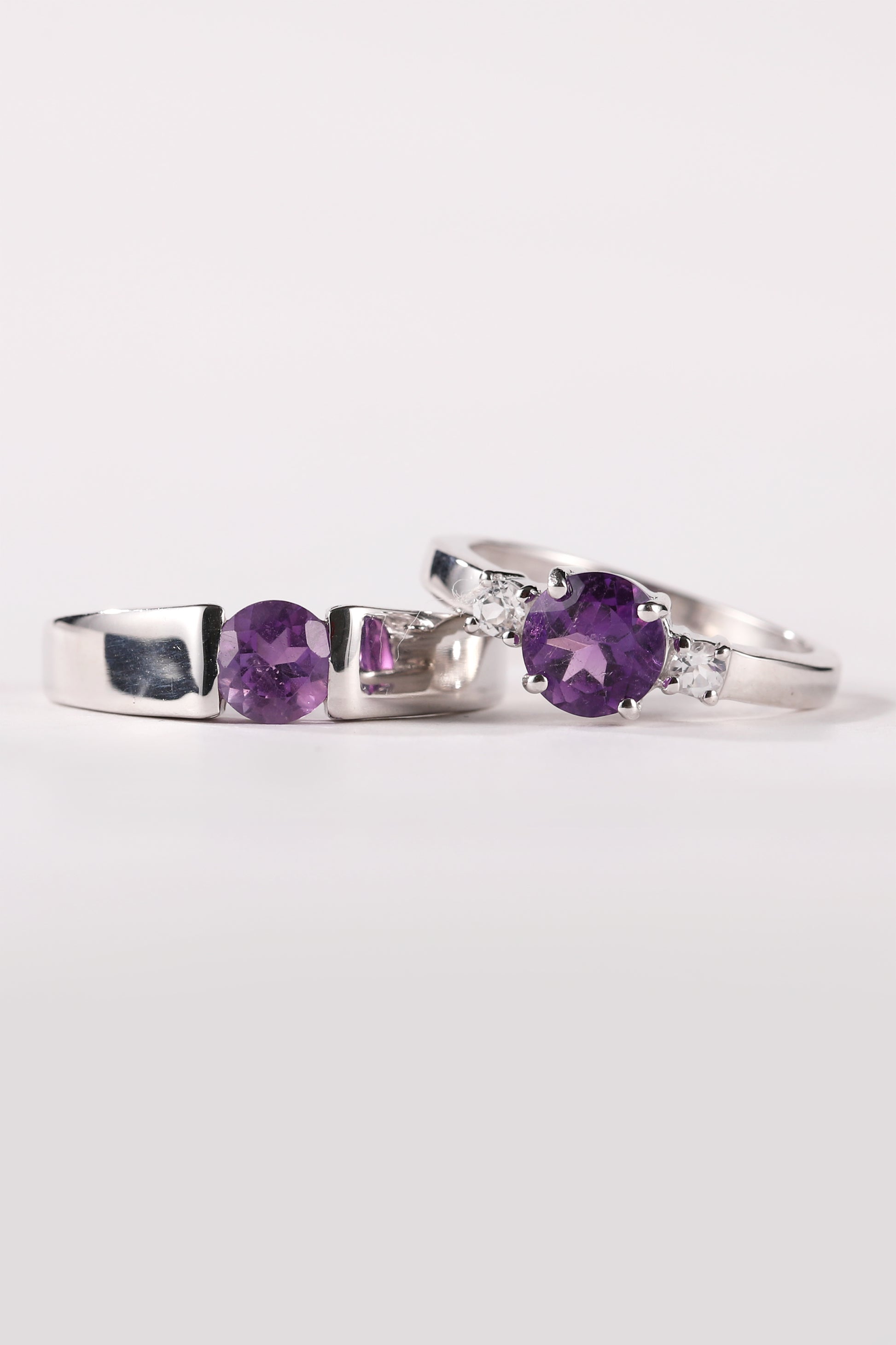 Elevate your love with our Couple Band, meticulously crafted in 925 sterling silver, featuring a captivating amethyst at its heart. Amethyst, a symbol of deep affection, makes this band the ideal Valentine's gift. Matching stones reflect shared commitment, an enduring testament to your love story. Embrace the bond with timeless elegance.