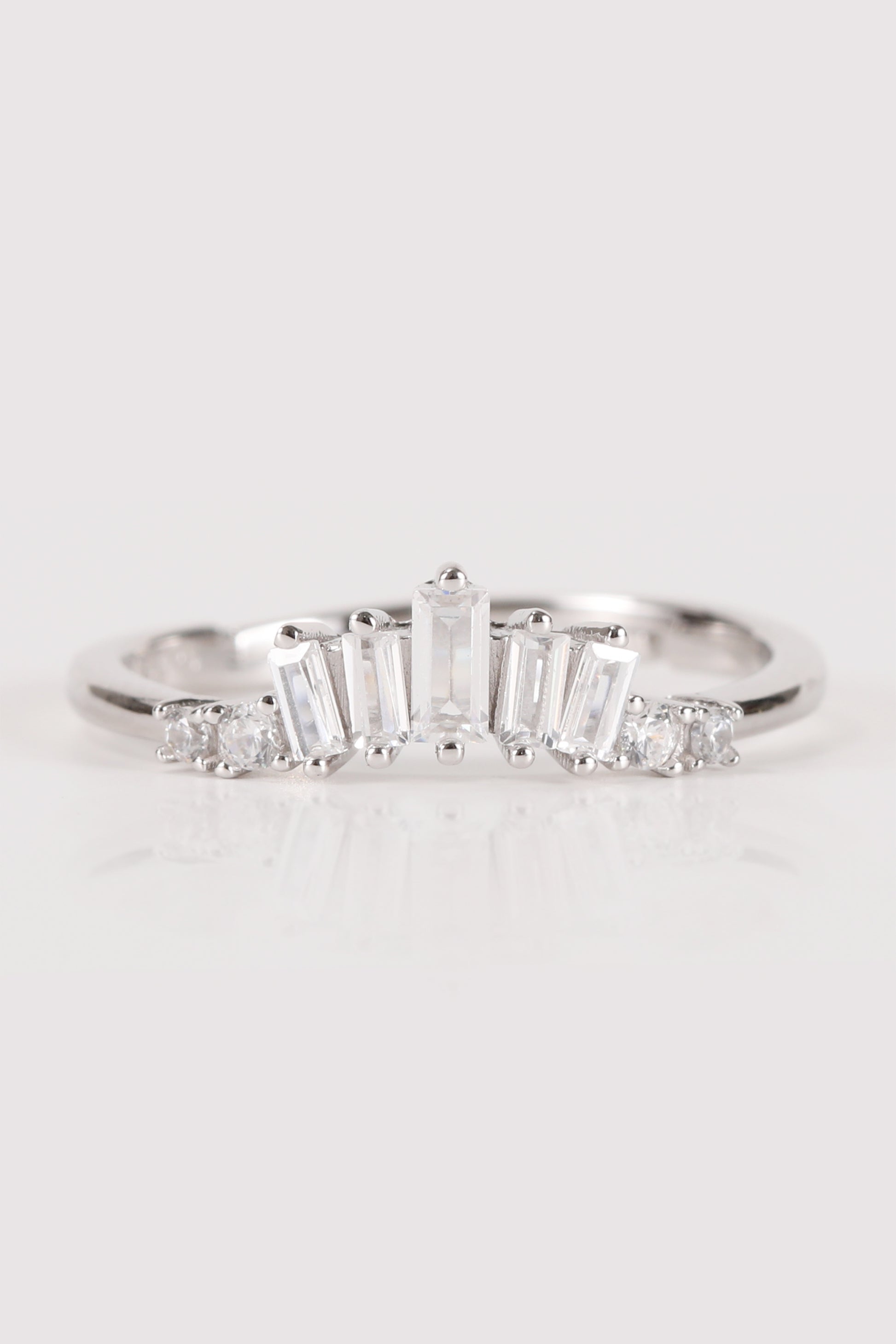 Exude regal elegance with our Silver Crown Ring, adorned with dazzling baguette gemstones. Embrace your inner princess with this royal masterpiece.