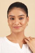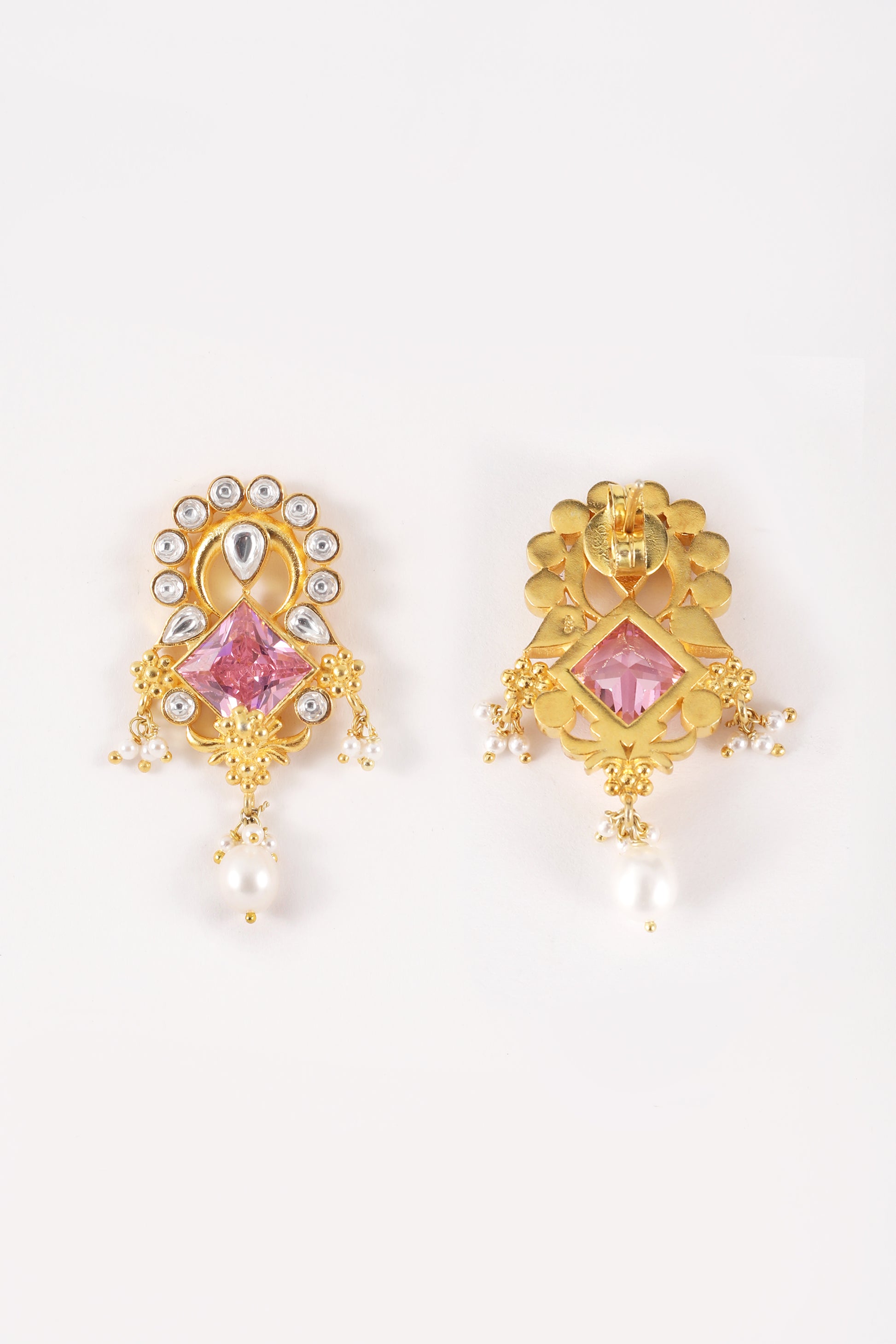 Introducing 'Avni,' a luxurious earring crafted in 925 sterling silver, plated with 24k gold. Adorned with a captivating pink stone, this piece effortlessly merges elegance with opulence, making every moment special.