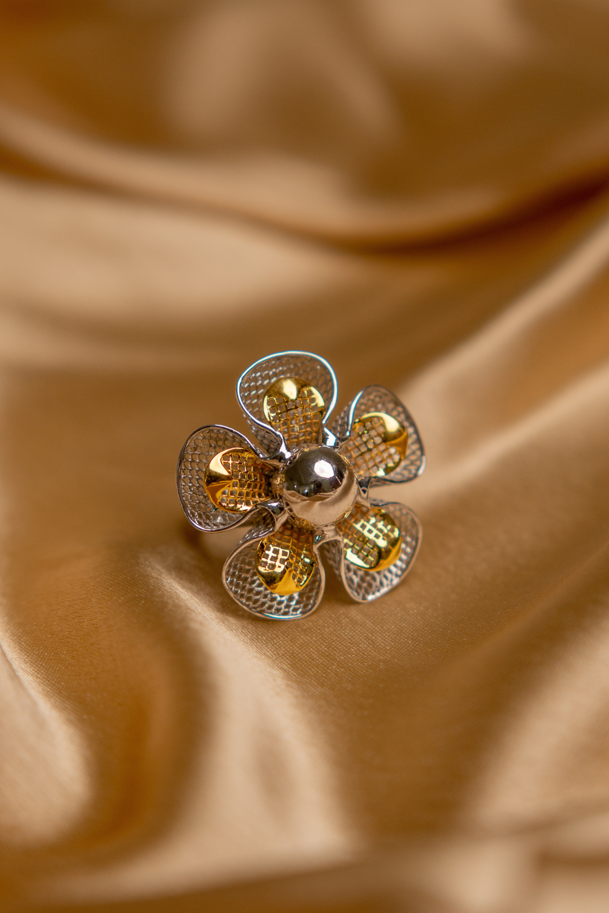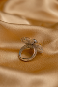 Styling Tip- Pair our Casted Flower Ring with your Indian attire for a touch of timeless glamour. Whether it's a vibrant saree or an elegant Anarkali suit, this silver cocktail ring will complement your ensemble, adding a sophisticated charm to your traditional look that's bound to turn heads.