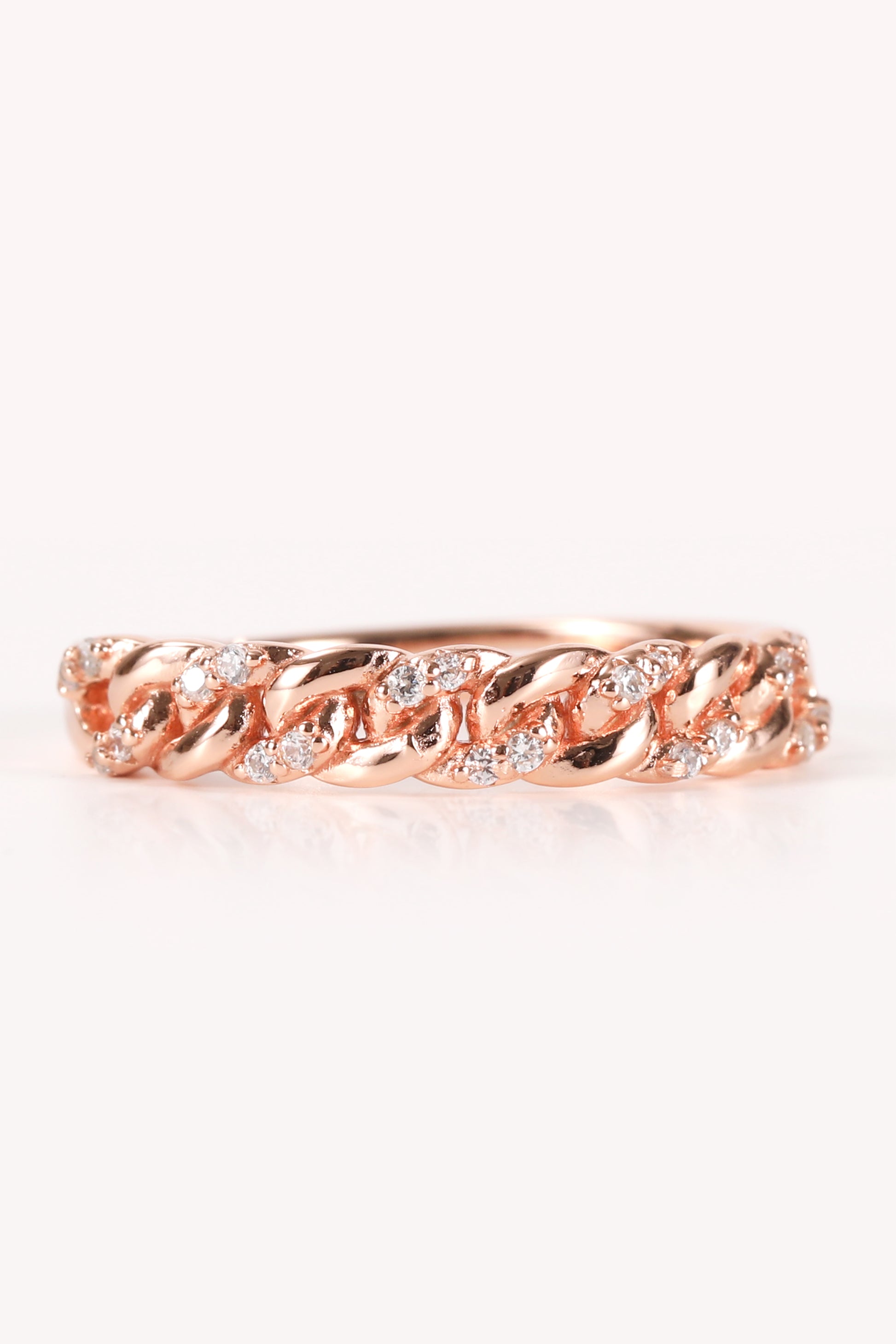 Elevate your style with the Bold and Beautiful Link Ring in captivating rose gold. This statement piece exudes confidence and sophistication, reminiscent of a timeless Cuban chain design.