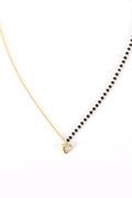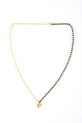 Celebrate love with our "Bond of Love" Mangalsutra, a fusion of elegance. Featuring a dual chain design - one plain, one mangalsutra, united by a heart pendant crafted in 925 sterling silver with 24k gold coating, adorned with a half-zircon embellishment. Flaunt your love with grace.