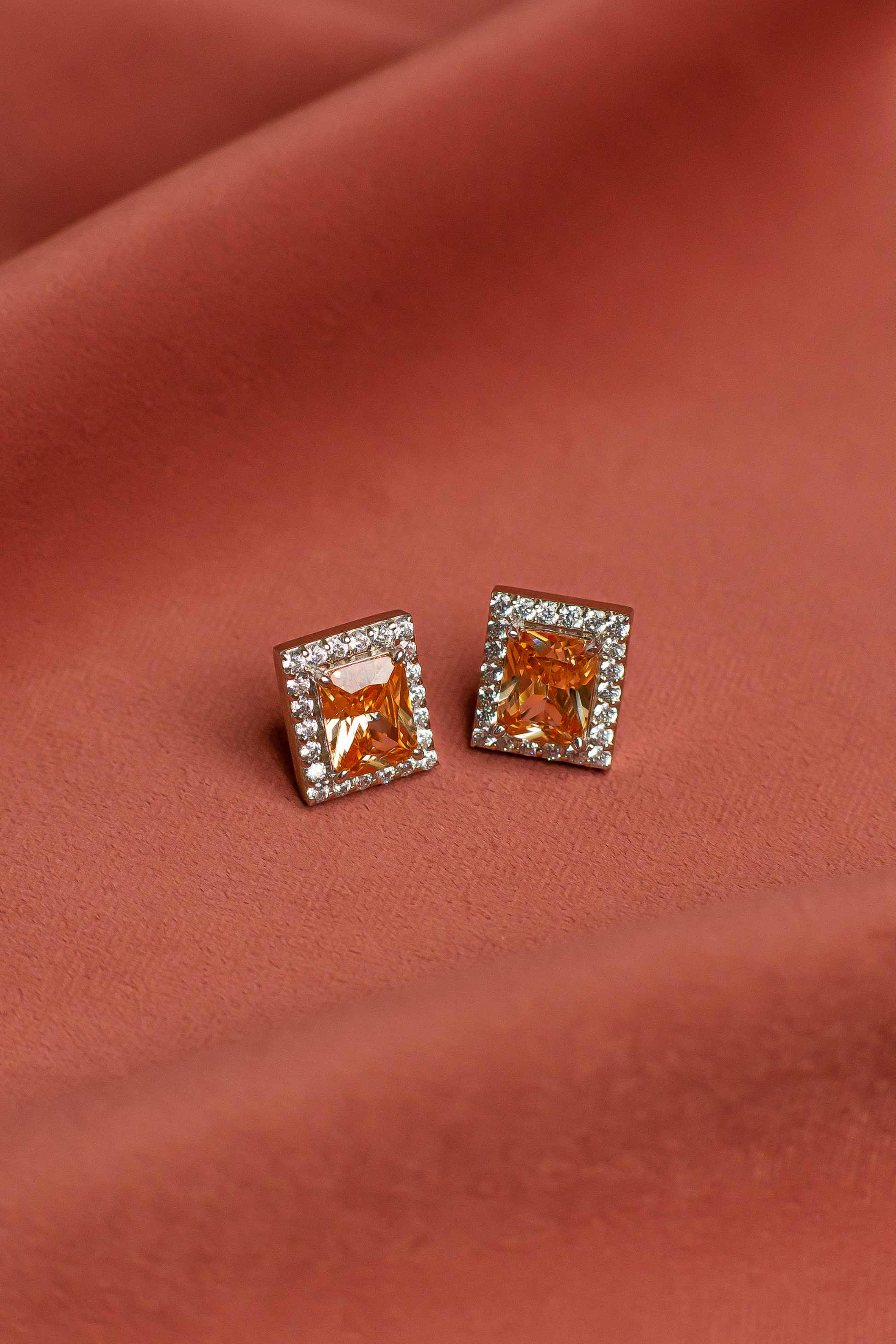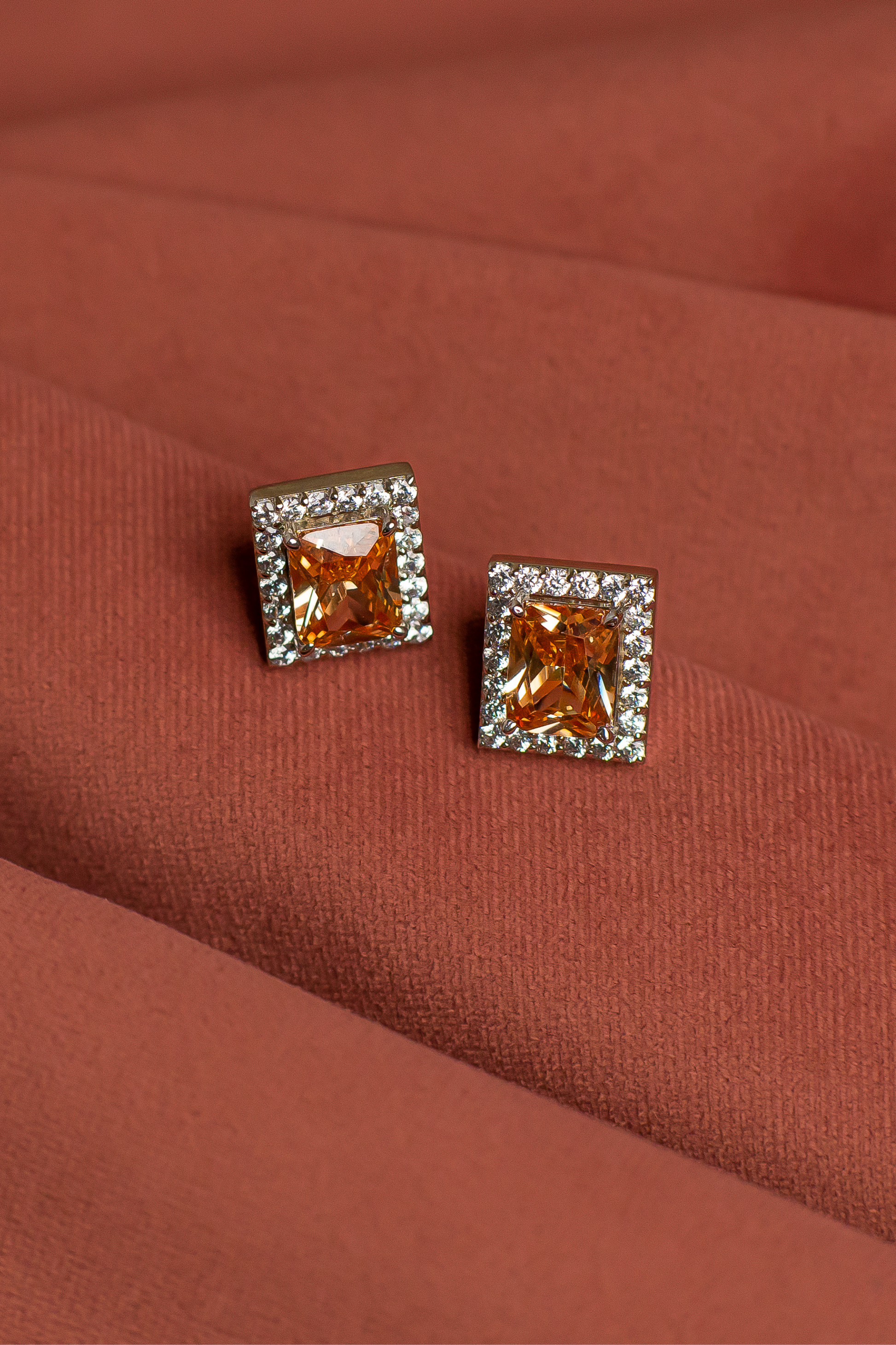 Elevate your elegance with our stunning Champagne Stud Earrings. Featuring champagne-colored emerald-cut stones surrounded by high-quality CZ, these earrings exude brilliance and sophistication, making them perfect for any occasion. Don't miss out on this exquisite accessory to stand out from the crowd.