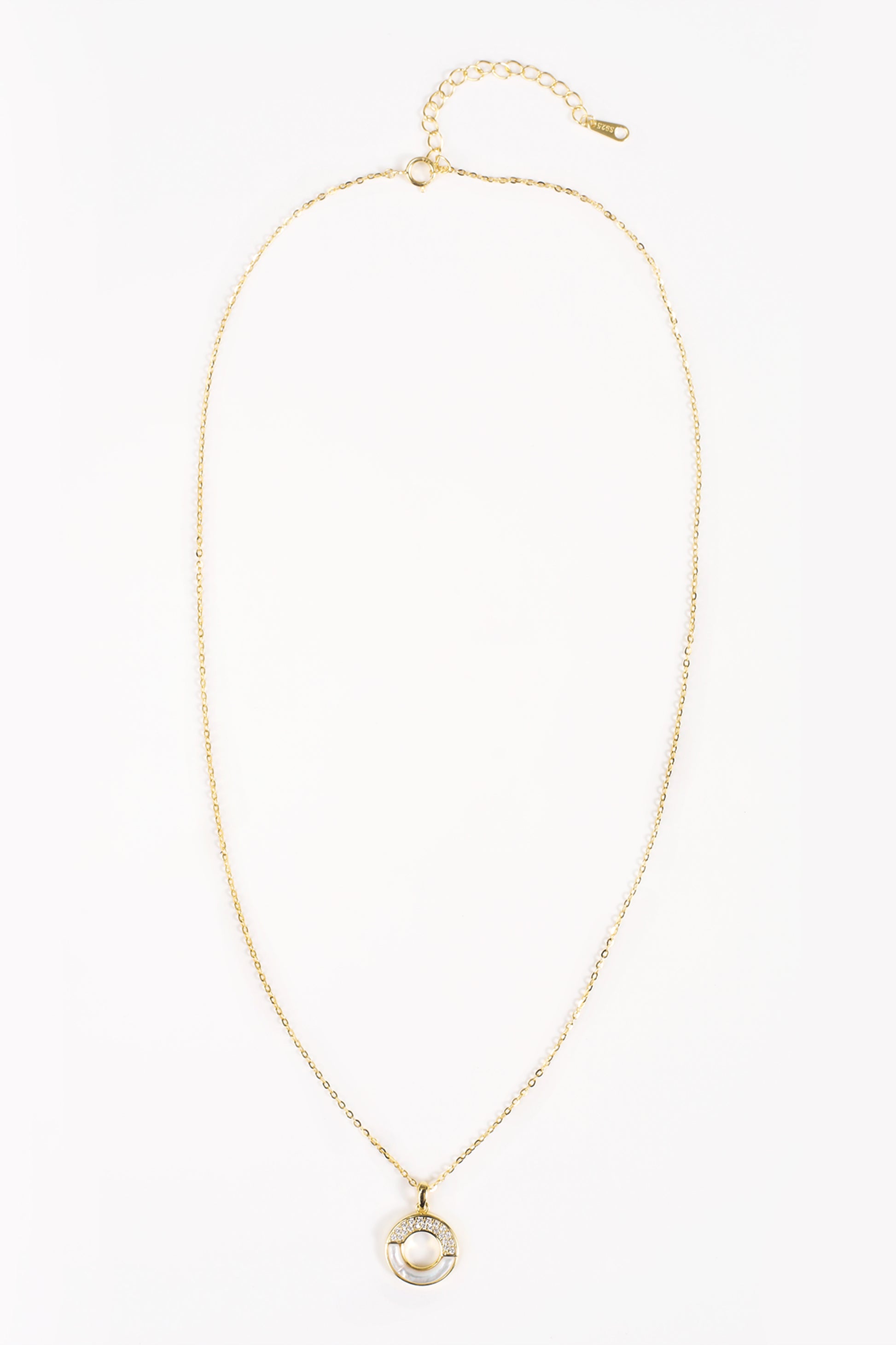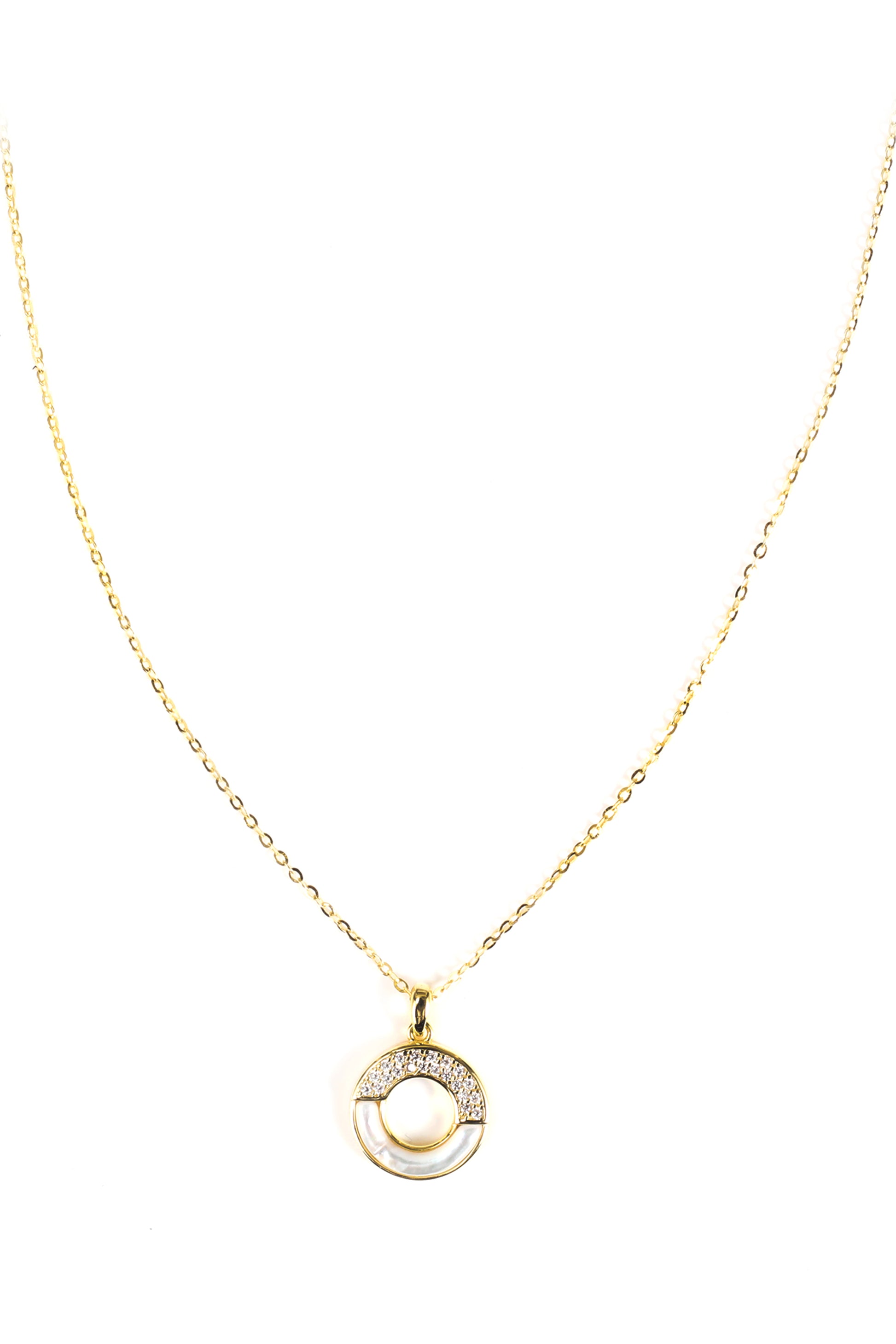 Radiate timeless elegance with our Silver Circle Charm Pendant. Half adorned in a delicate light pink hue and half in classic gold, featuring a polished gold pendant for a touch of sophistication.
