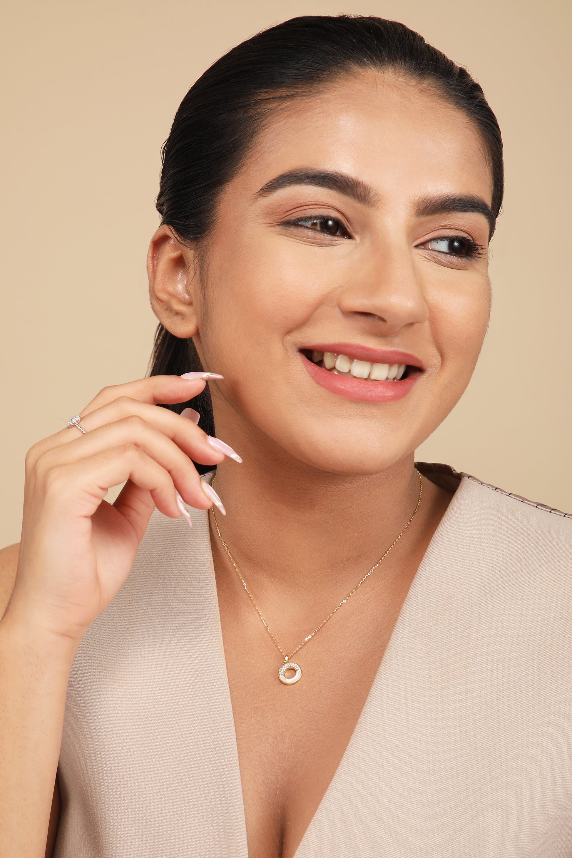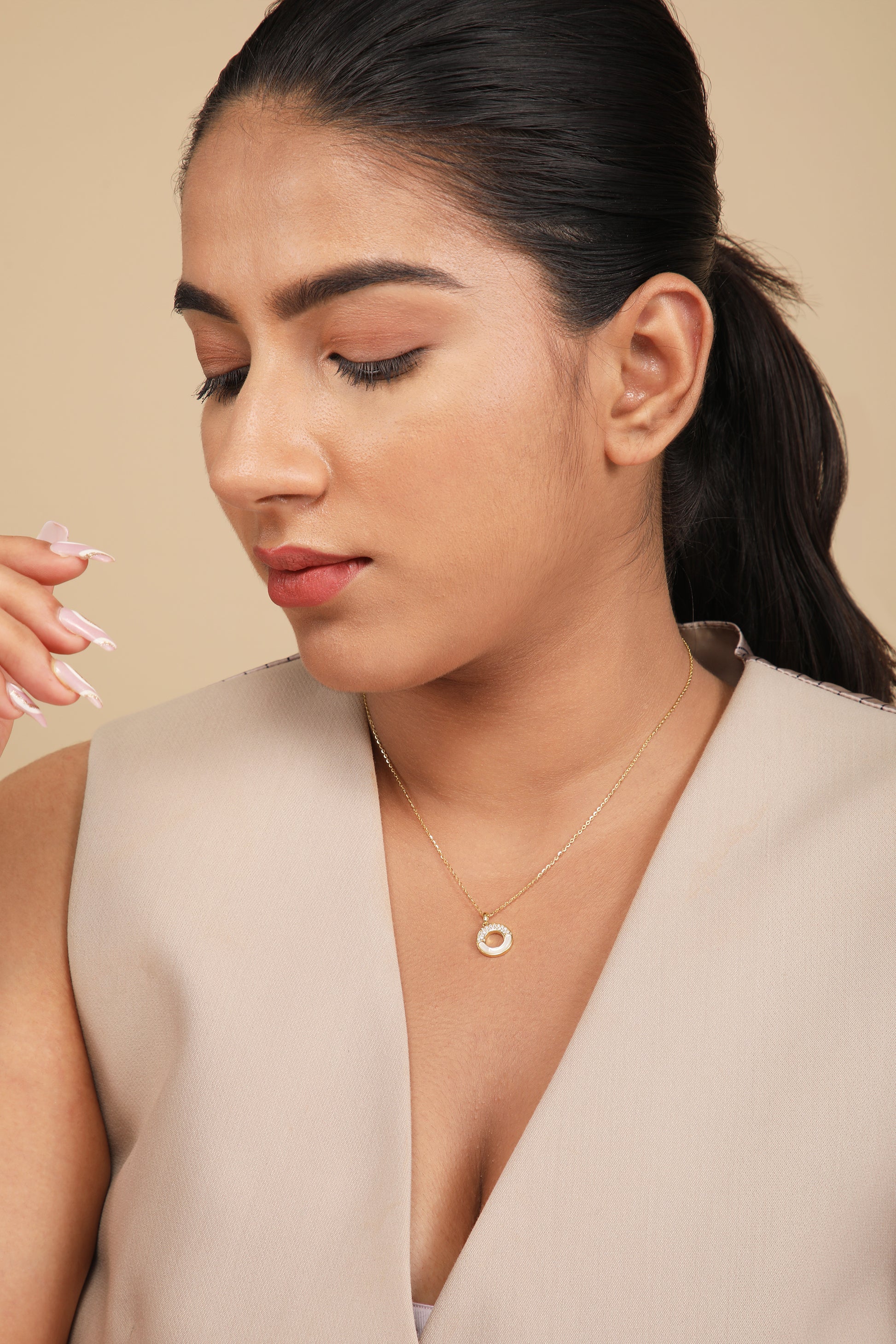 Styling Tip- Pair your silver circle charm pendant with soft pinks or neutrals for a delicate balance of femininity and elegance. Let the golden pendant shimmer as the centerpiece of your ensemble.