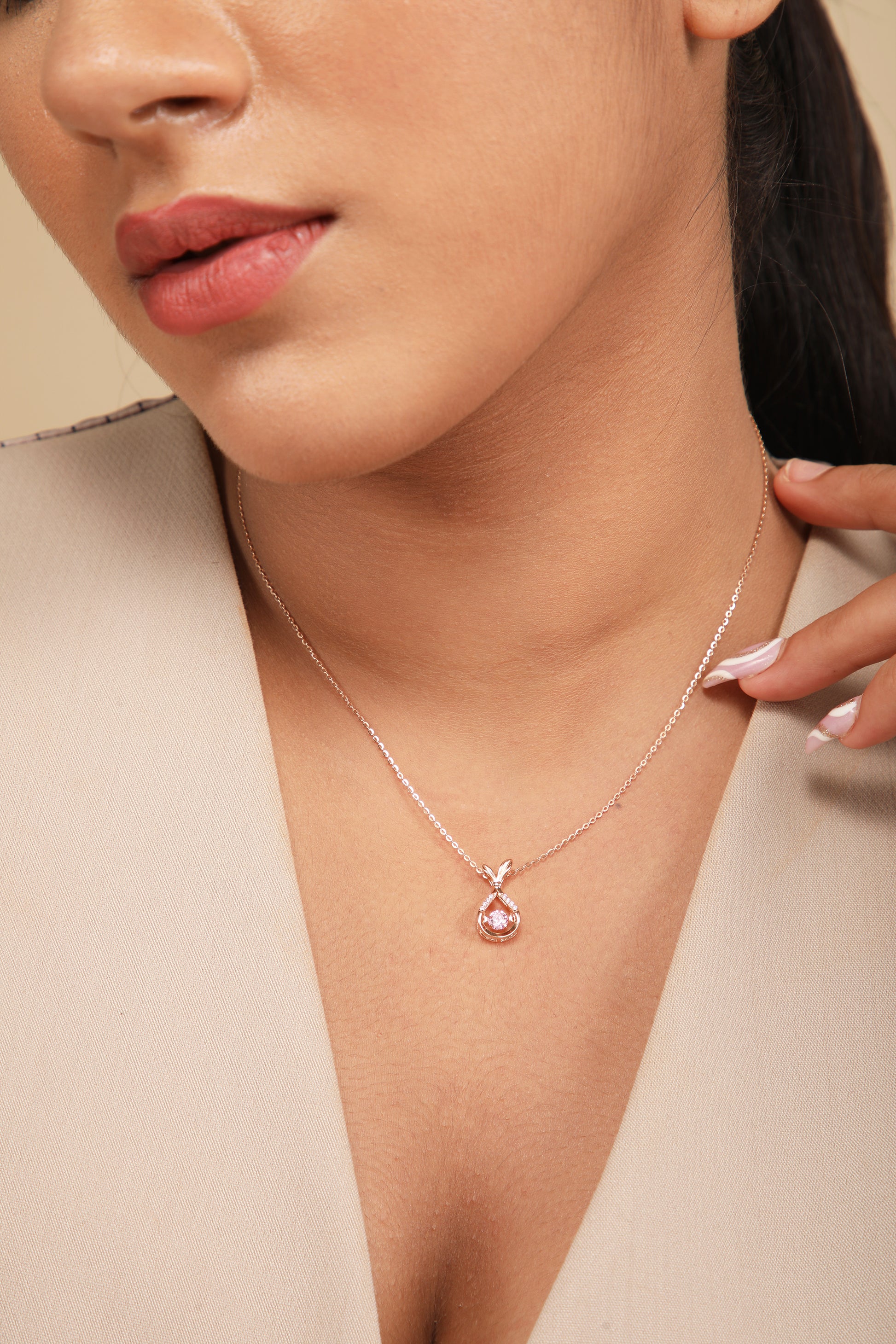 Styling Tip- Embrace the soft-girl aesthetic with our dainty "Pink Pot" pendant in silver. Wear it with a pastel dress for a whimsical touch. The bunny ear design and dangling pink crystal exude feminine charm.