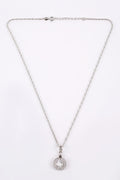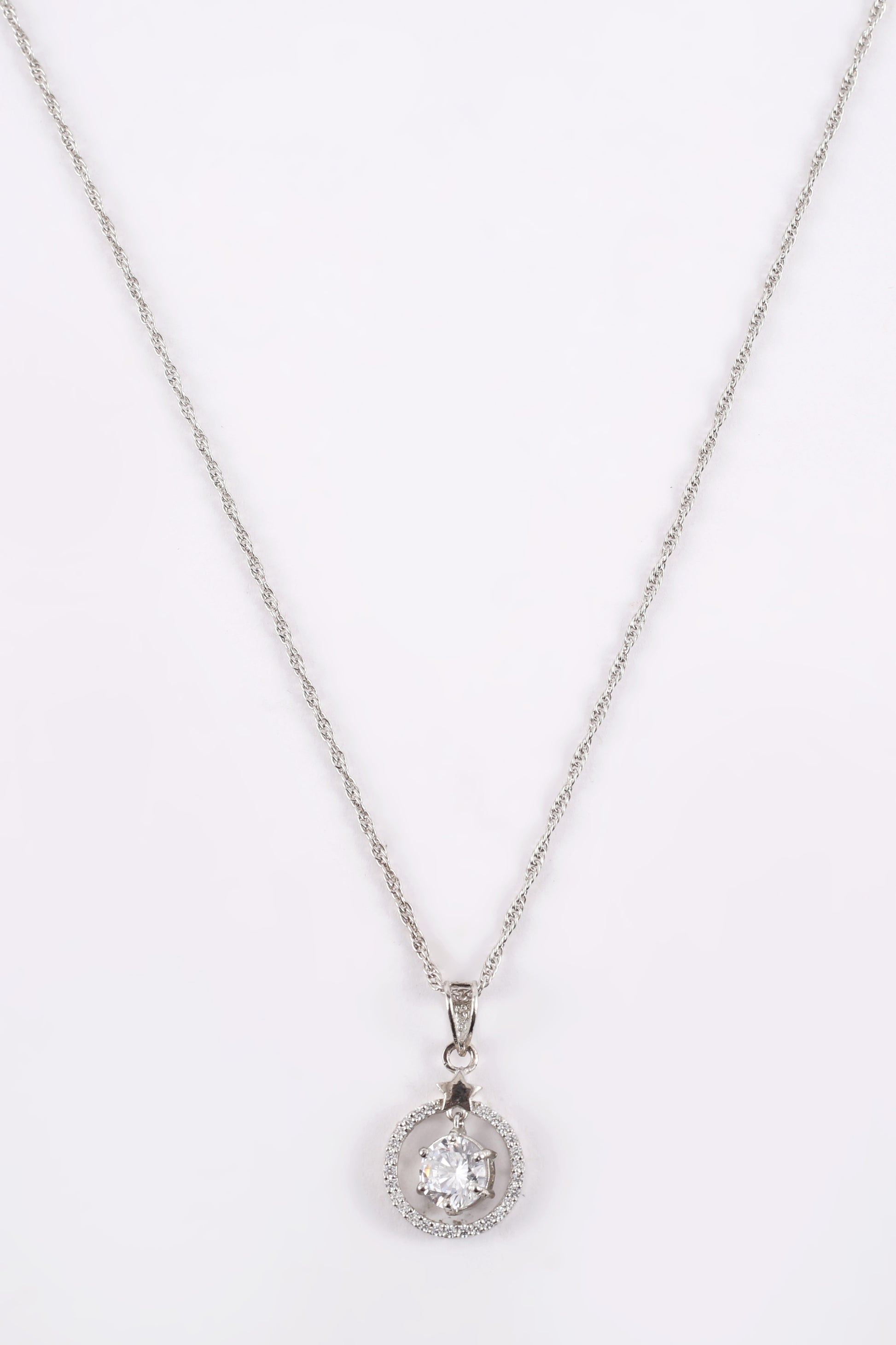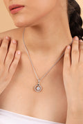 This captivating pendant, crafted in 925 sterling silver and finished in a brilliant white rhodium polish, features a delicate circular frame with a shimmering stone that dangles freely inside, resembling a twinkling star in the night sky. The minimalist design, combined with the playful movement of the stone, creates a timeless yet modern piece that effortlessly elevates any look. Whether worn alone for a subtle sparkle or layered with other necklaces, this pendant adds a touch of elegance and charm to both casual and formal outfits.