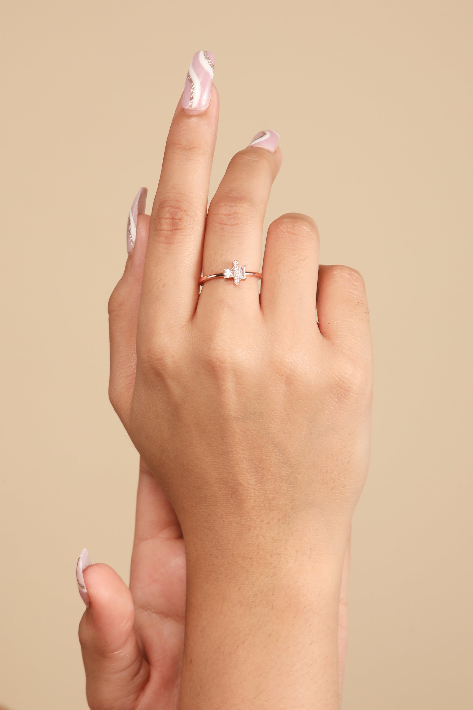 Styling Tip- Embrace the charm of our Dazzle Dream Silver Ring, a delightful blend of baguette, studded elegance, and a sparkling crystal. Perfect for adding a touch of cute sophistication to any outfit.