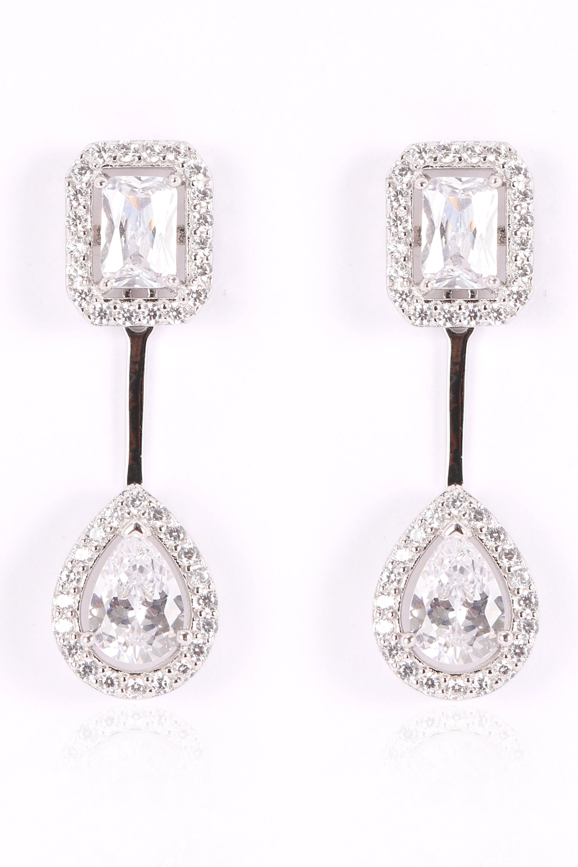 Elevate your style with our versatile detachable silver earring. Adorn your ear with a dazzling emerald stud or attach the captivating pear-shaped crystal for an elegant dangler. Effortlessly transition from chic simplicity to glamorous allure.