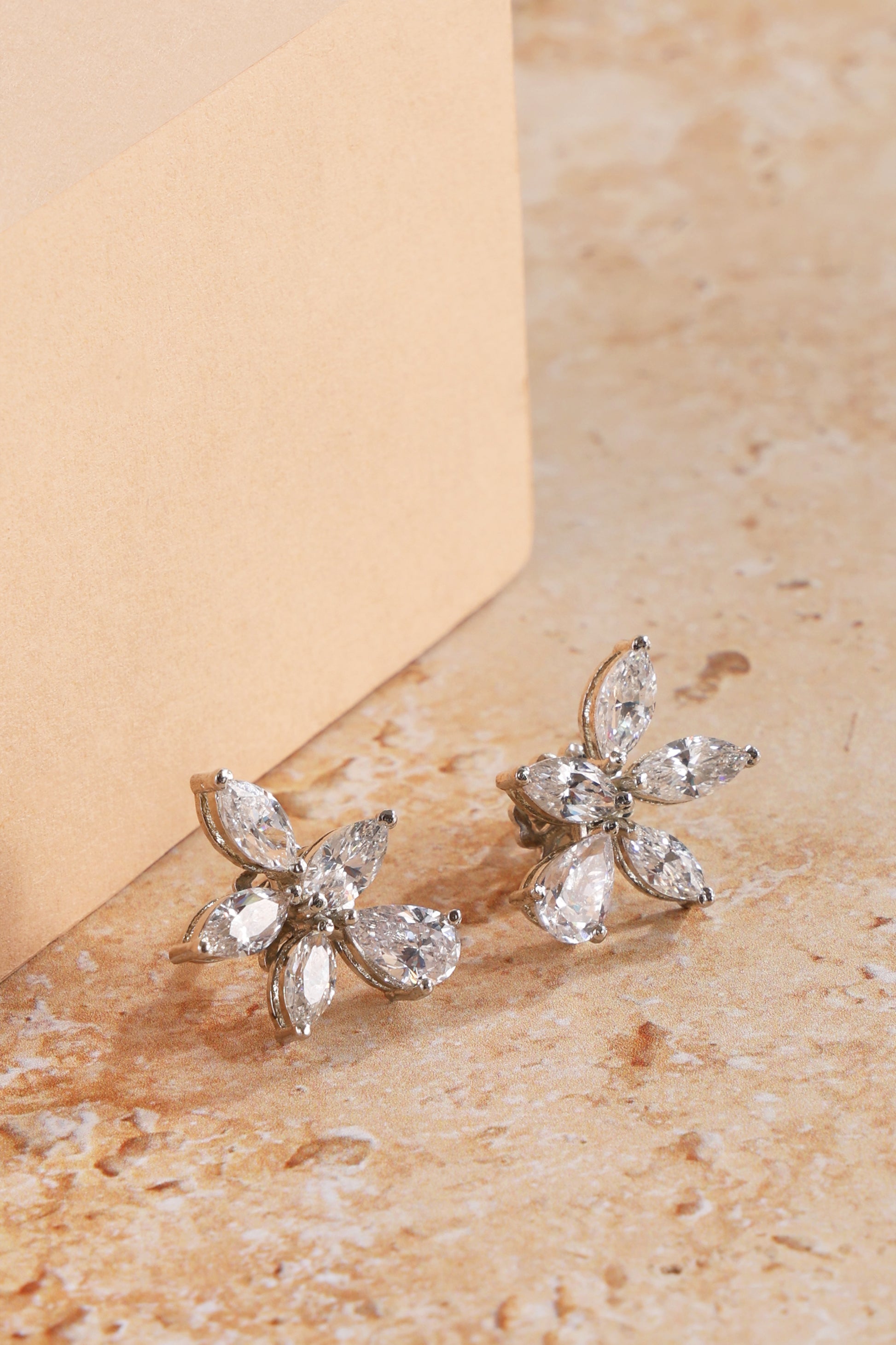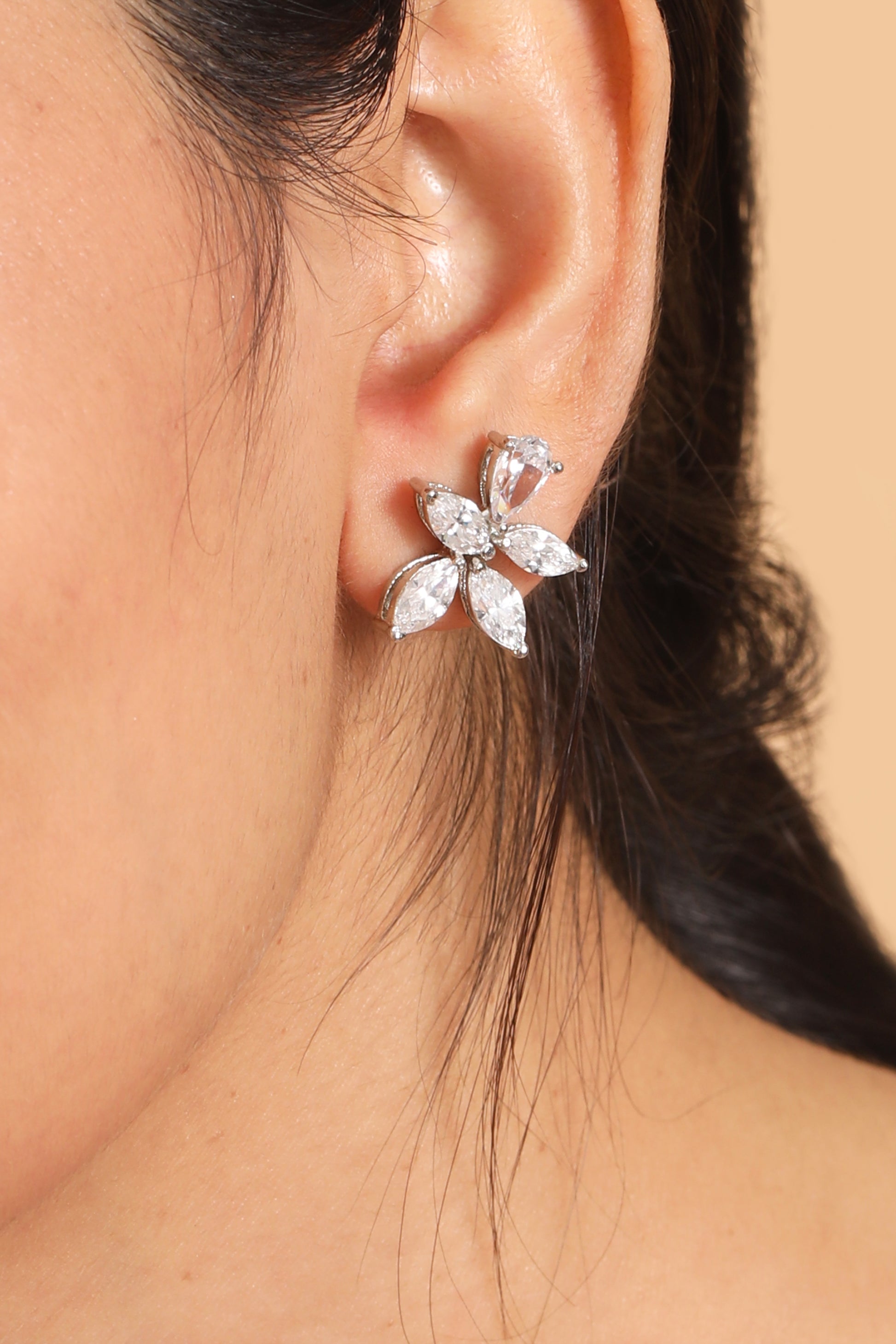 Styling Tip- Pair the Dewdrop Daisy earrings with an elegant updo or soft waves to showcase their sparkle. Opt for delicate silver or CZ-accented accessories and neutral or pastel outfits to complement their refined charm.