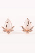 Introducing our exquisite silver earring, adorned with a delicate pink blush stone, intricately veiled in a graceful leafy silver pattern with a rose gold finish. A perfect, petite Bali masterpiece.
