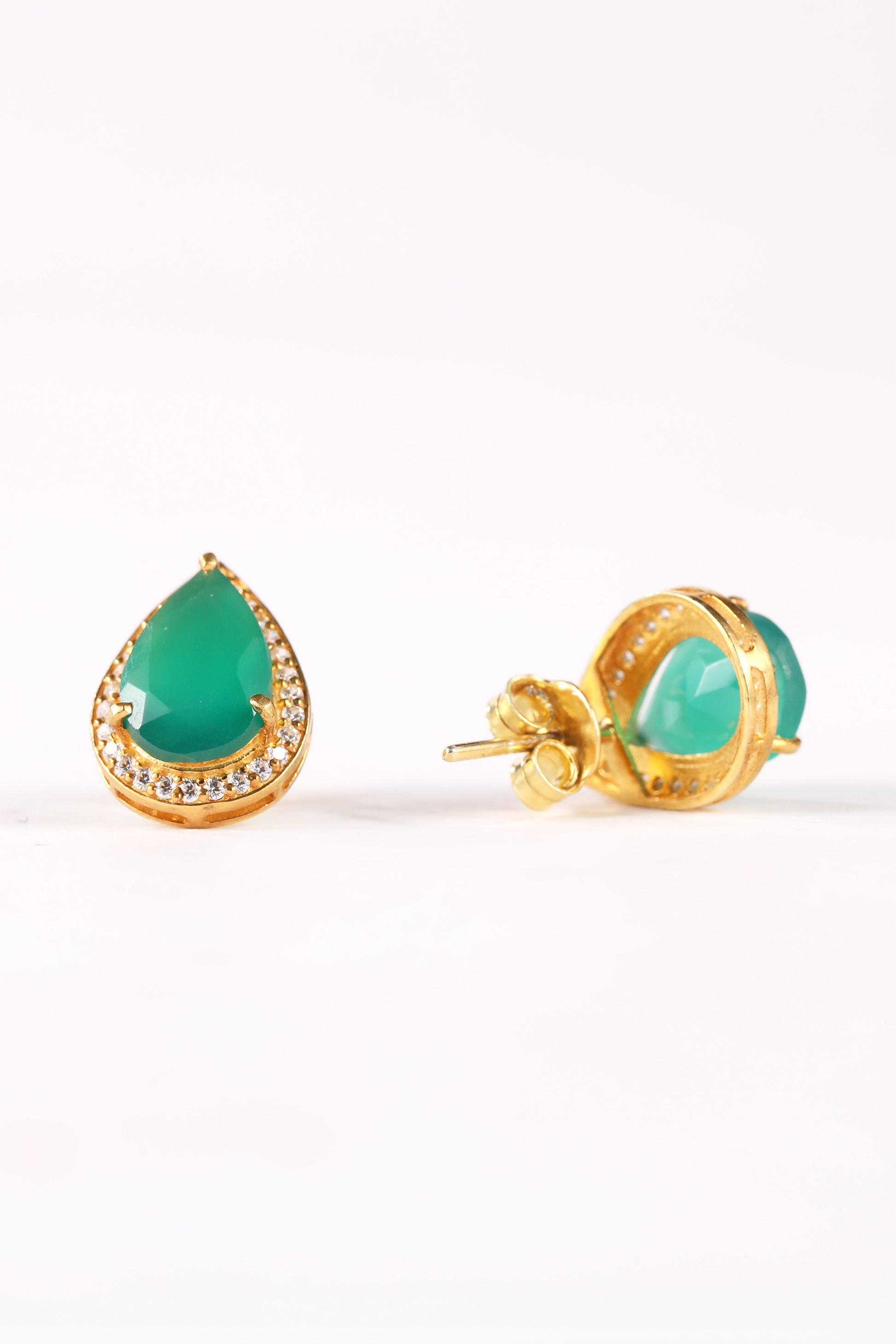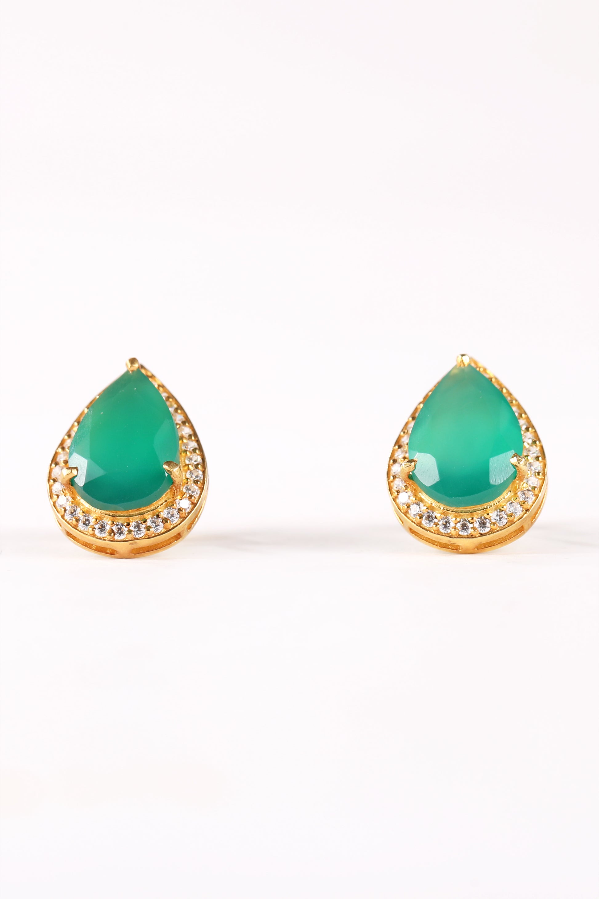 Elevate your elegance with our stunning Emerald Pear Stud Earrings, crafted in premium 925 sterling silver and lavishly plated with 24kt gold. The exquisite pear-shaped emerald stone takes center stage, radiating a rich green hue that symbolizes timeless beauty and sophistication.