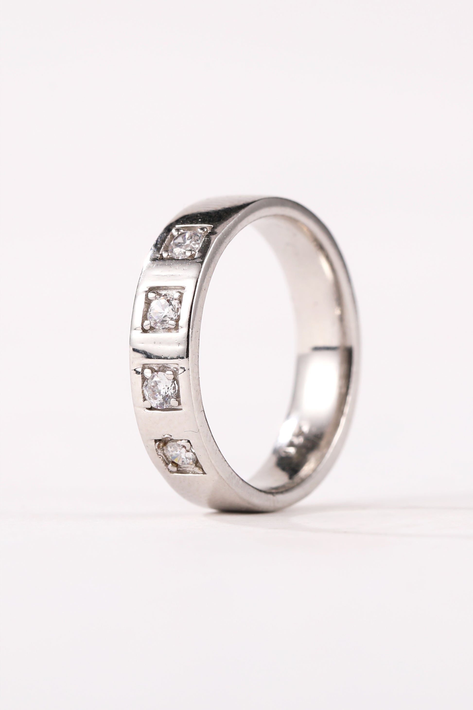 "Eternal Harmony" men's ring, a fusion of strength and sophistication in 925 sterling silver. Four stones set at intervals symbolize enduring moments. This Valentine's, gift him a timeless token of your love, celebrating the journey you've shared and the unwavering connection that defines your relationship.
