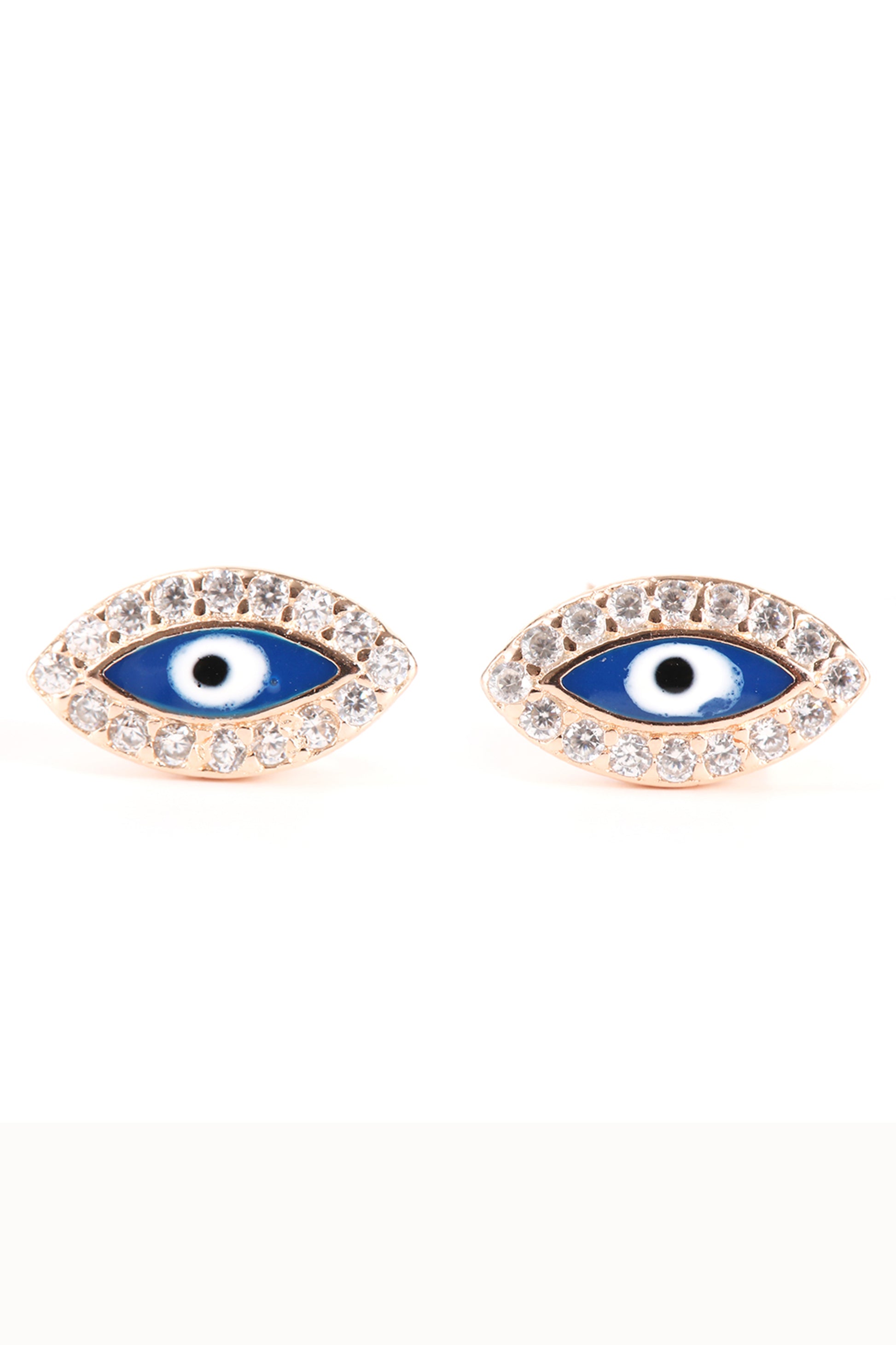 Introducing our eye-shaped evil eye stud earring, a captivating blend of silver and rose gold. With its protective symbolism and versatile design, it's your perfect daily accessory for a touch of style and positivity.