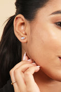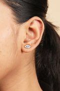 Styling Tip- Elevate your daily style with the eye-shaped evil eye stud earring, blending silver and rose gold. Its subtle charm complements any outfit, from casual jeans to office attire, adding a touch of protection and sophistication.