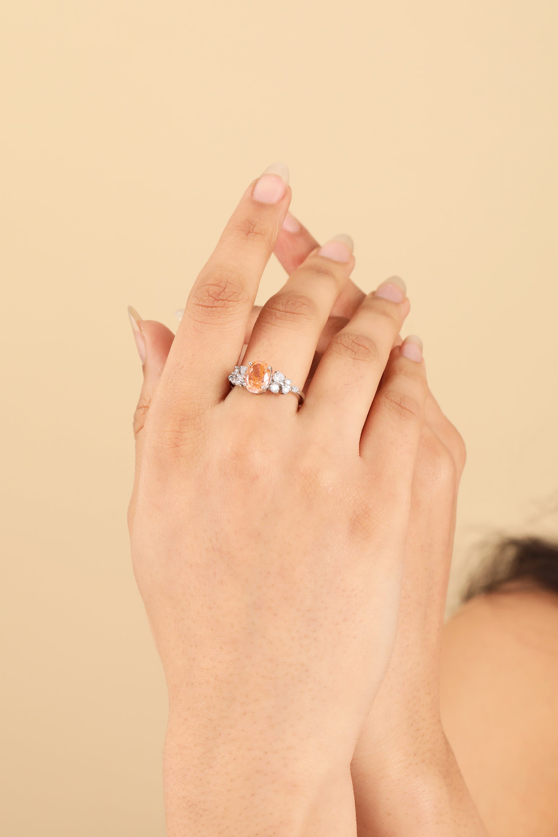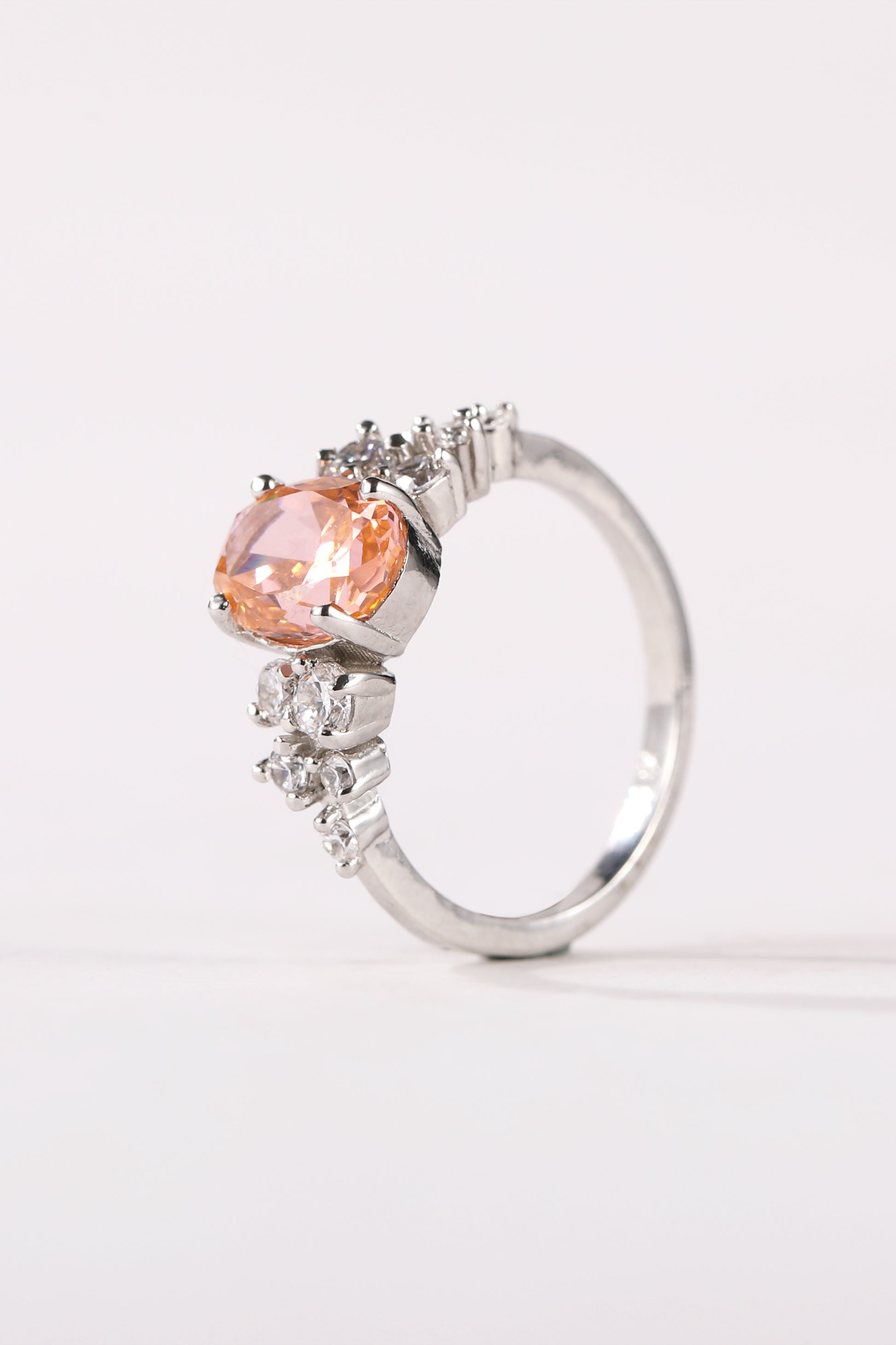 Styling Tip- This ring gets along with all the styles and enhances your personality.Pair our Five Crystal Morganite ring with neutral tones or pastels to accentuate its regal allure. Whether for formal occasions or everyday elegance, this ring complements your style, exuding confidence.