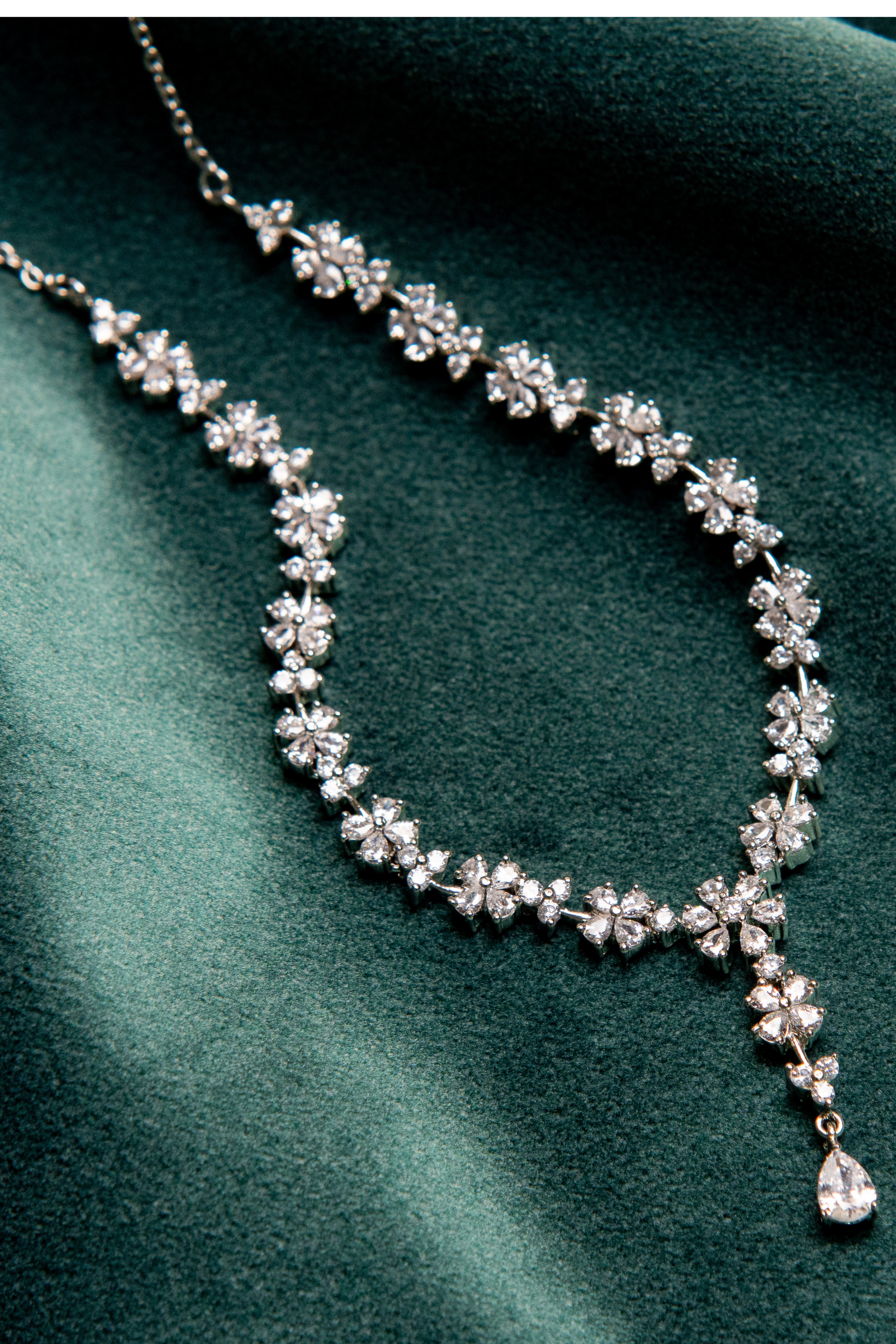 Elevate your style with our exquisite Floral Crystal Necklace Set. Featuring high-quality crystals in an intricate floral design, this set includes matching earrings. A timeless accessory to treasure for years.