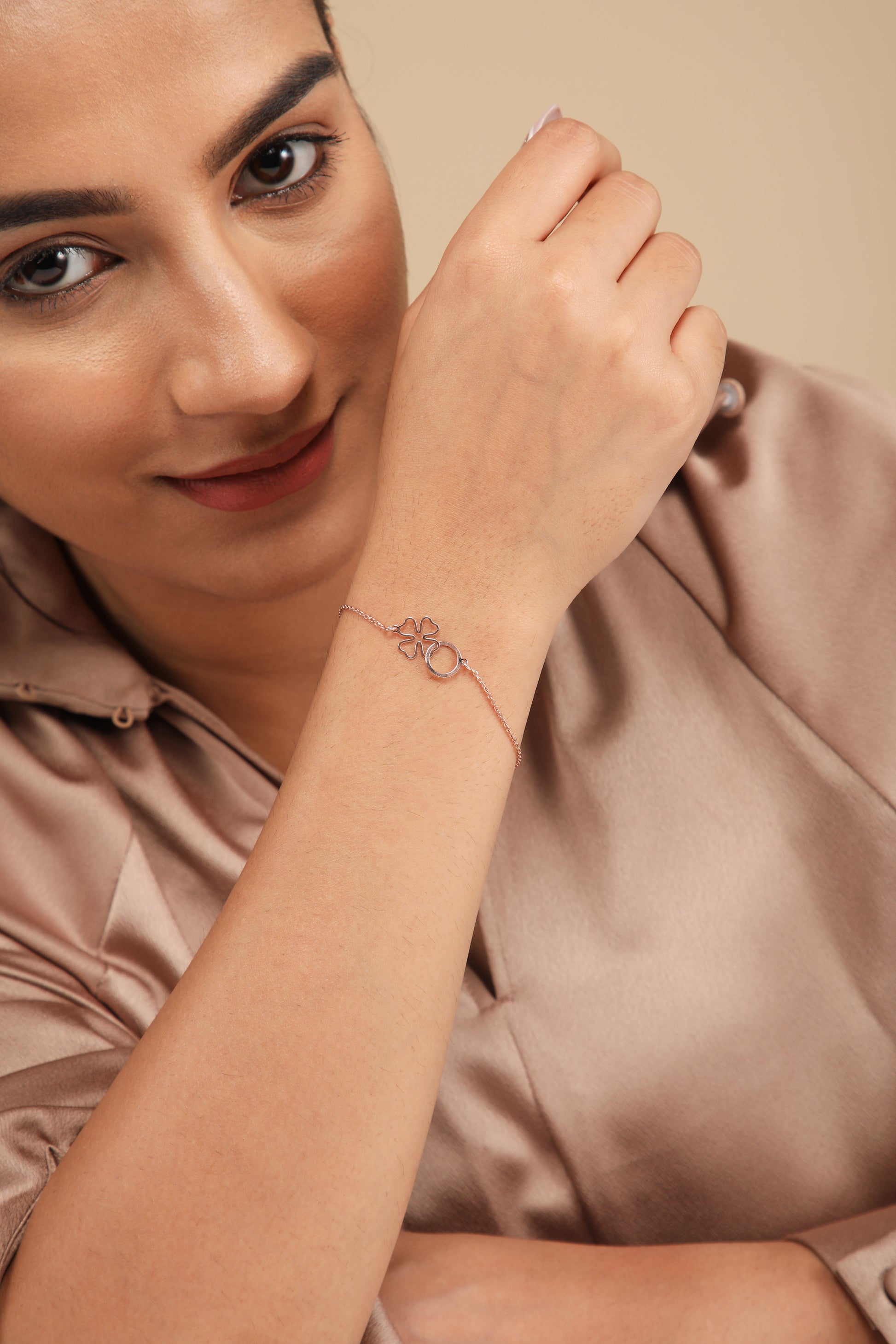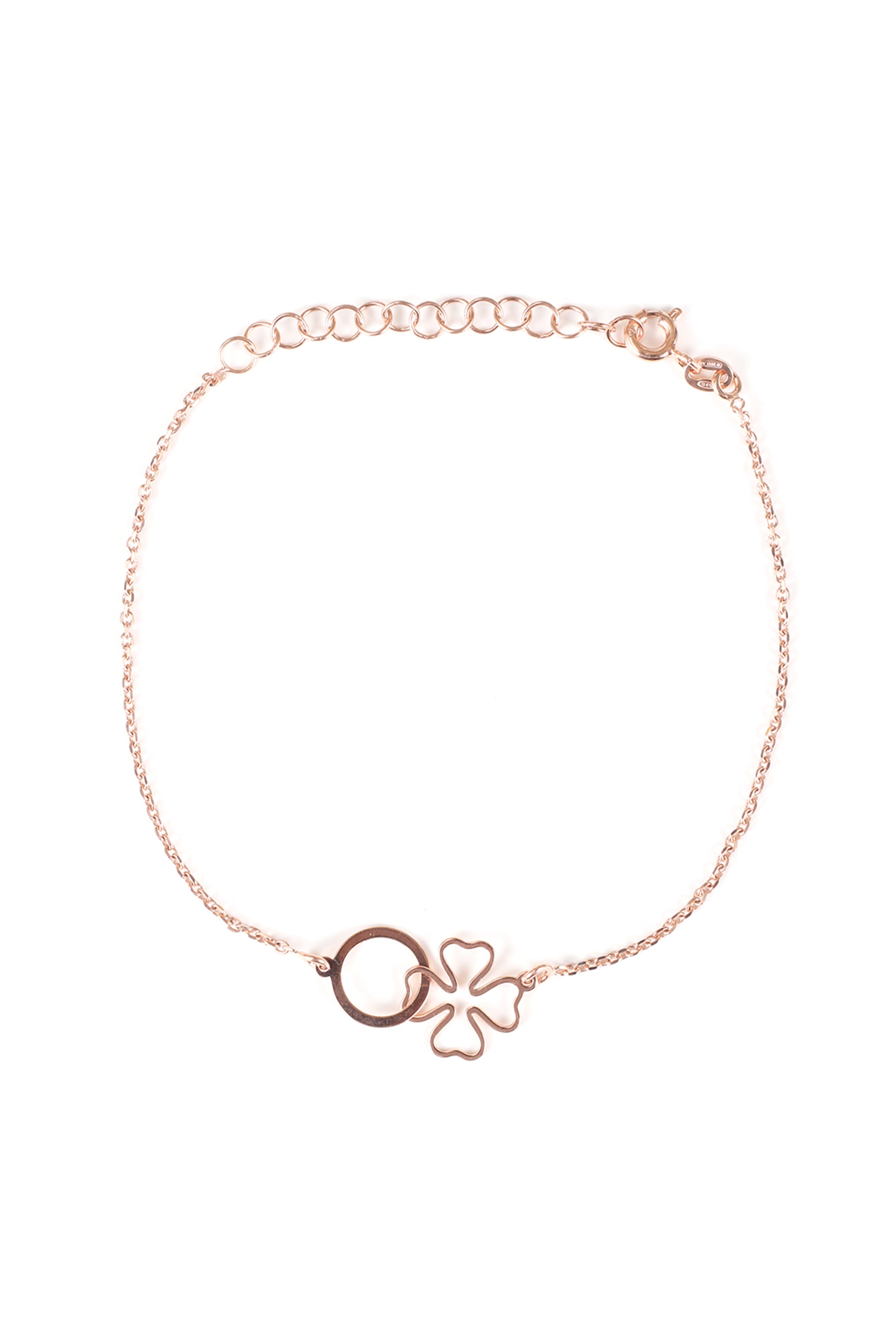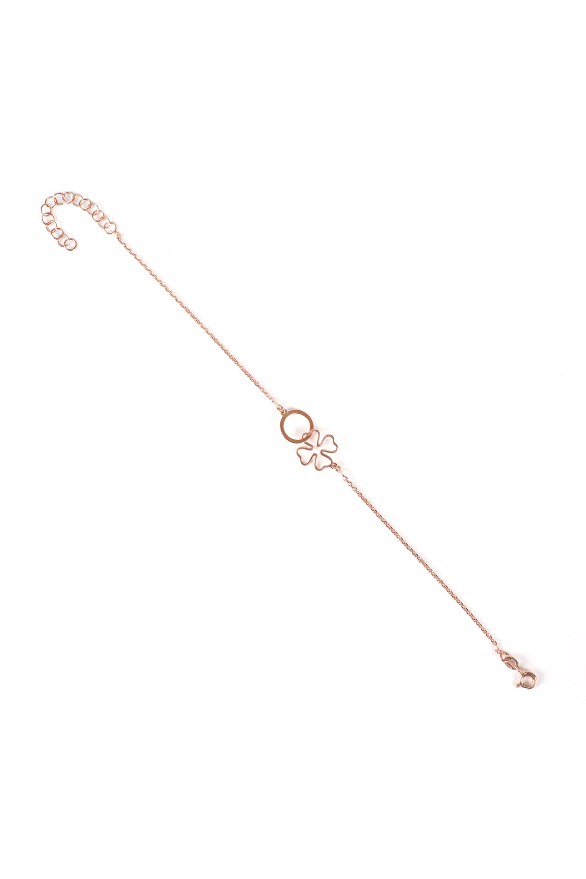 Introducing "Floral Harmony" – a chic 925 sterling silver bracelet that effortlessly blends simplicity and elegance. The delicate four-petal flower and connected circle symbolize unity, making it a timeless accessory for today's trendsetting generation.