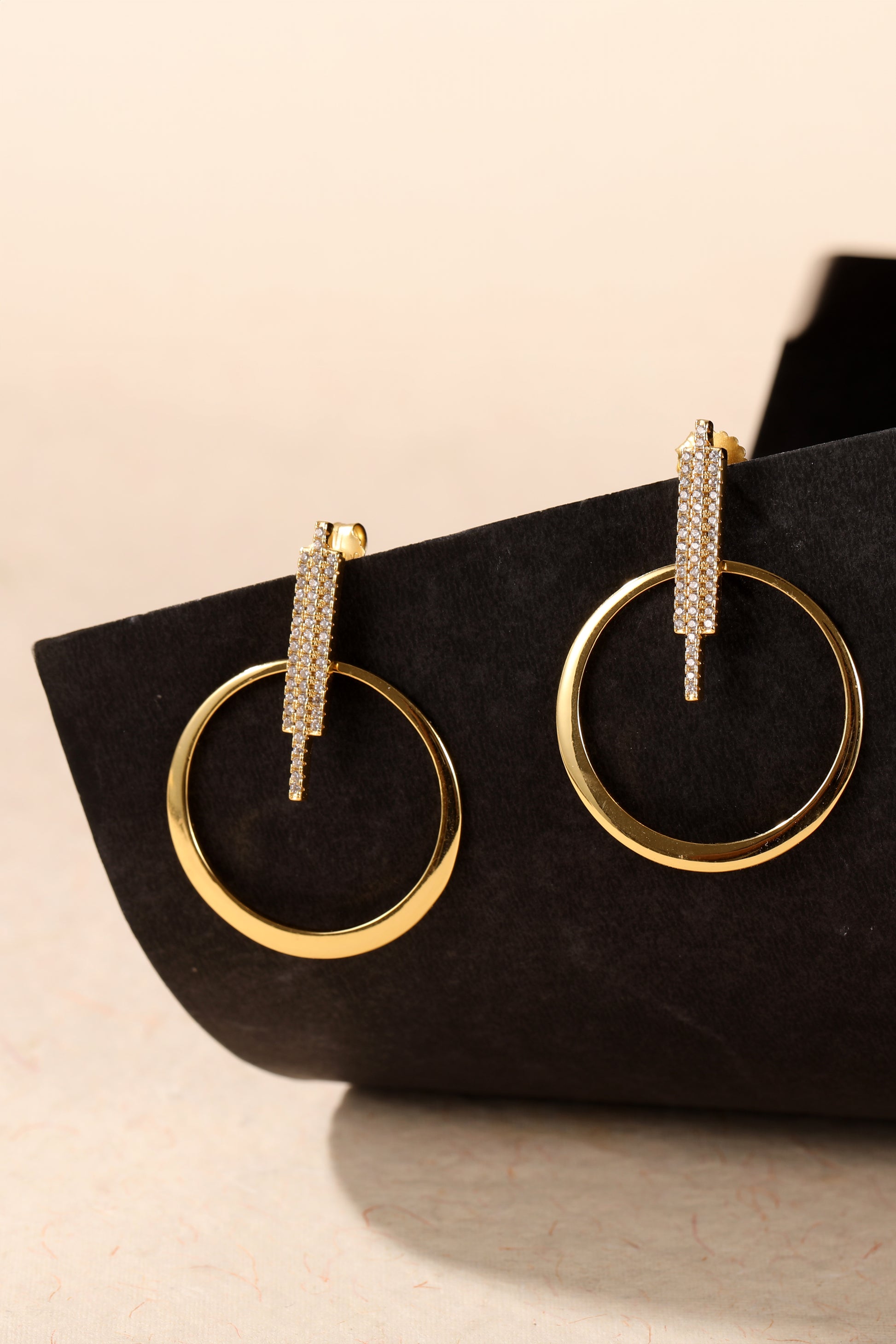 Elevate your elegance with our Golden Red Carpet Statement Earring. A stunning blend of sophistication and style, featuring a captivating line and circle design that exudes glamour and allure.
