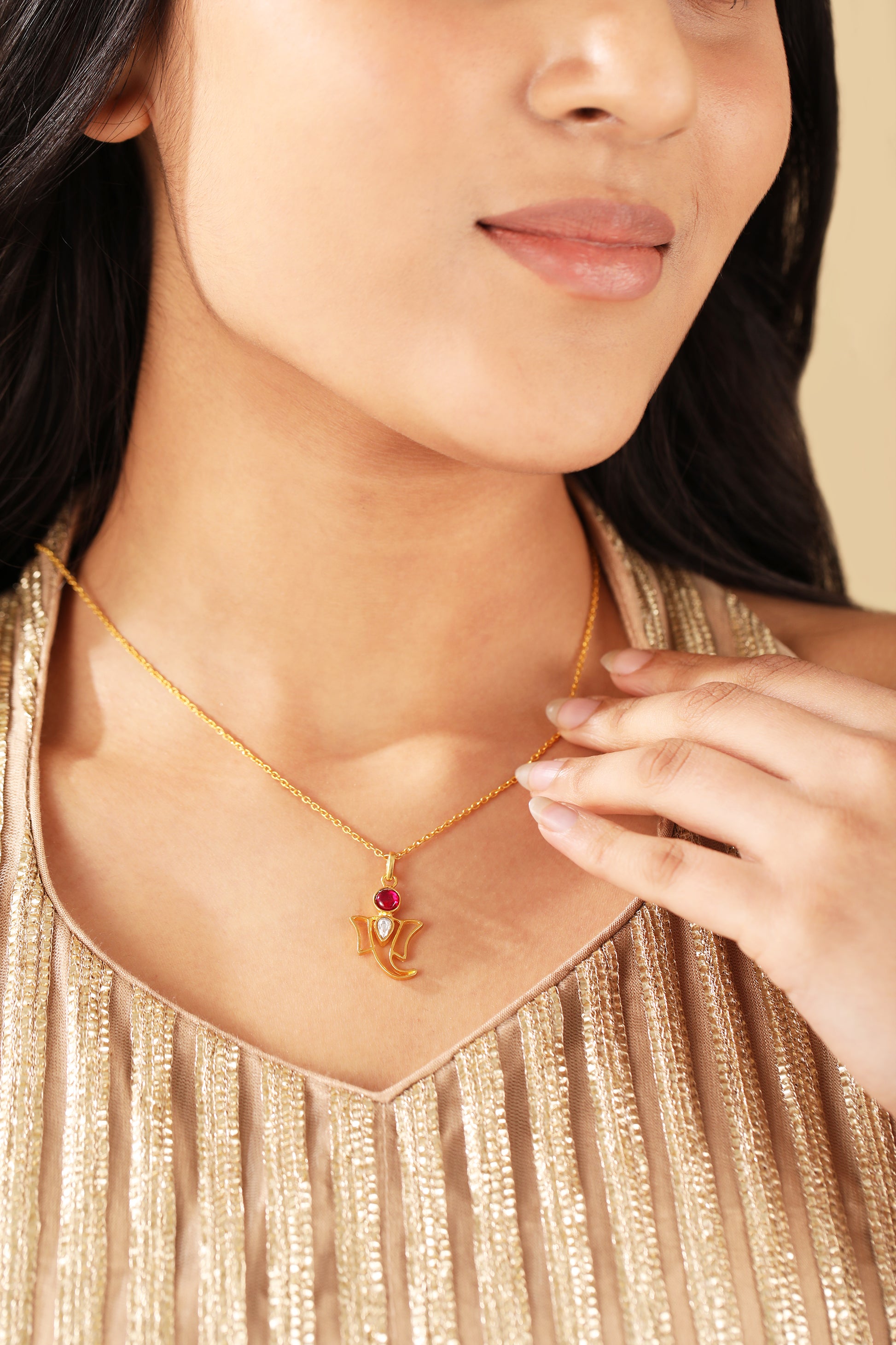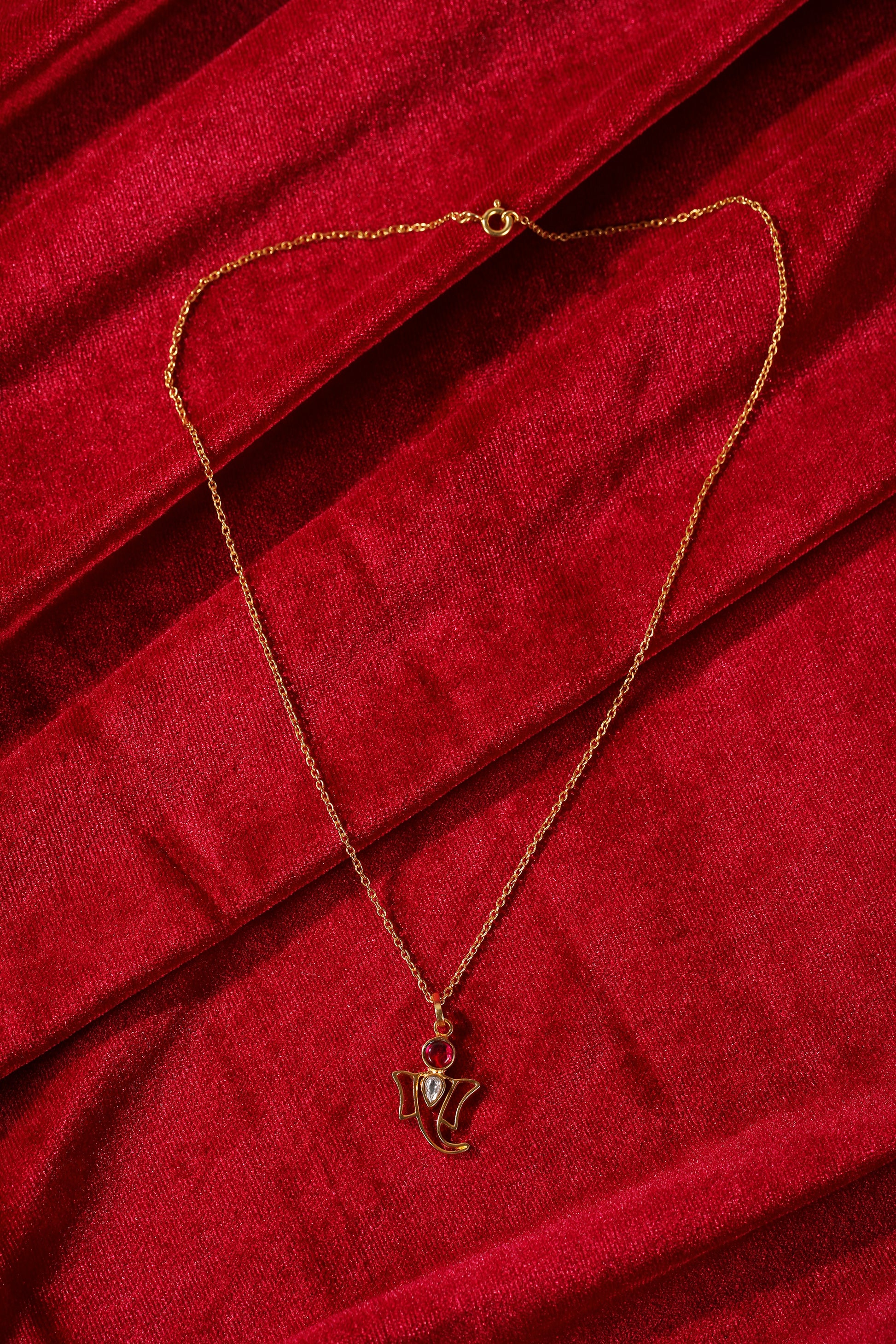 Styling Tip-Pair the Ganesh pendant with a traditional silk saree or kurta set in rich jewel tones like deep maroon, emerald green, or royal blue for an elevated festive look. The gold polish of the pendant complements the luxurious fabric, creating a harmonious and refined appearance. For a more modern twist, you can also wear it with a simple white or pastel-colored outfit, letting the pendant stand out as the focal point.This Ganesh pendant makes a thoughtful and meaningful gift for Ganesh Chaturthi, especially for someone attending a Ganesh Pooja.