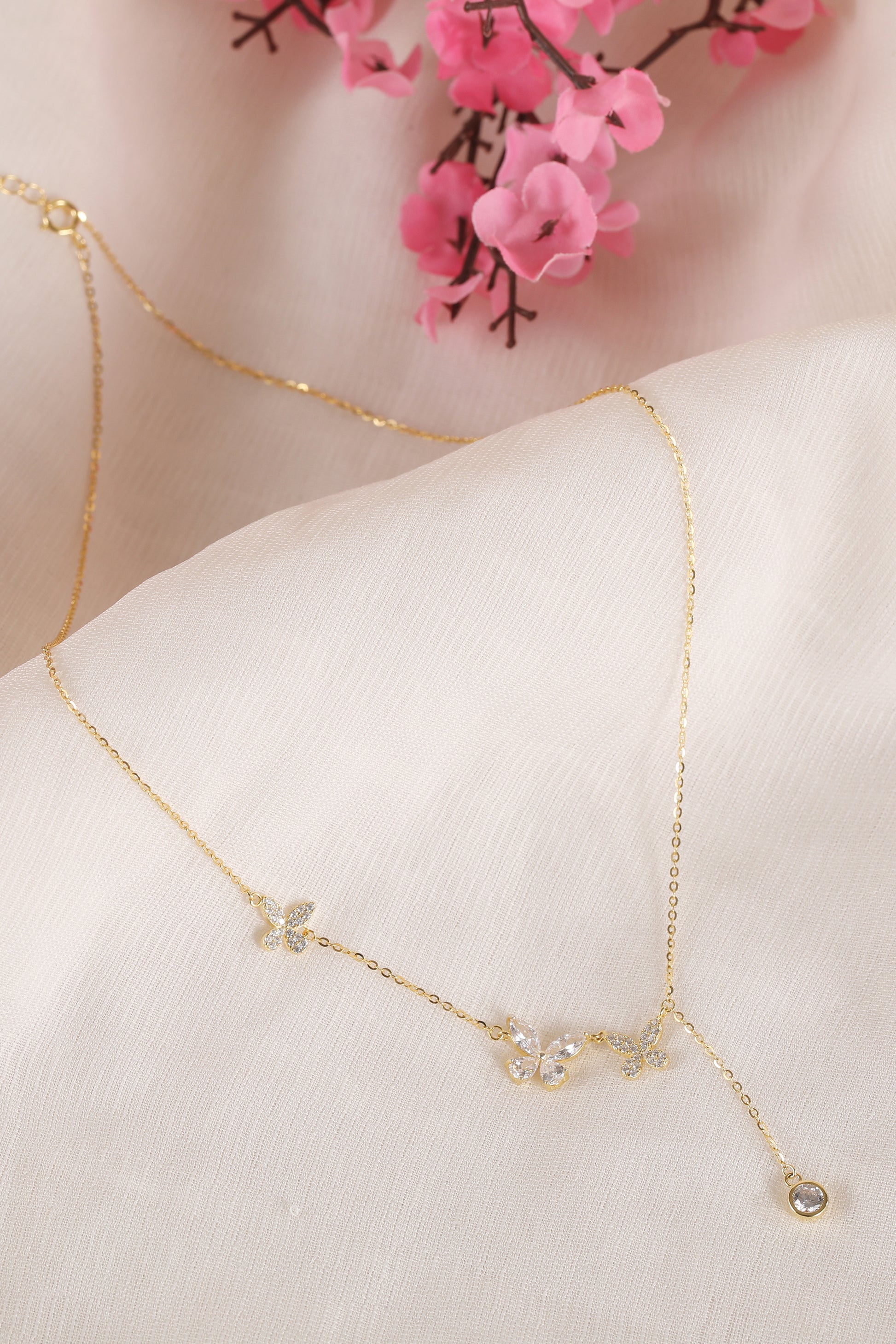 Introducing "Glowing Flutter," a luxurious 925 sterling silver pendant featuring a trend-setting trio of golden butterflies. This unique design exudes elegance, making it a standout accessory for those who appreciate timeless beauty.