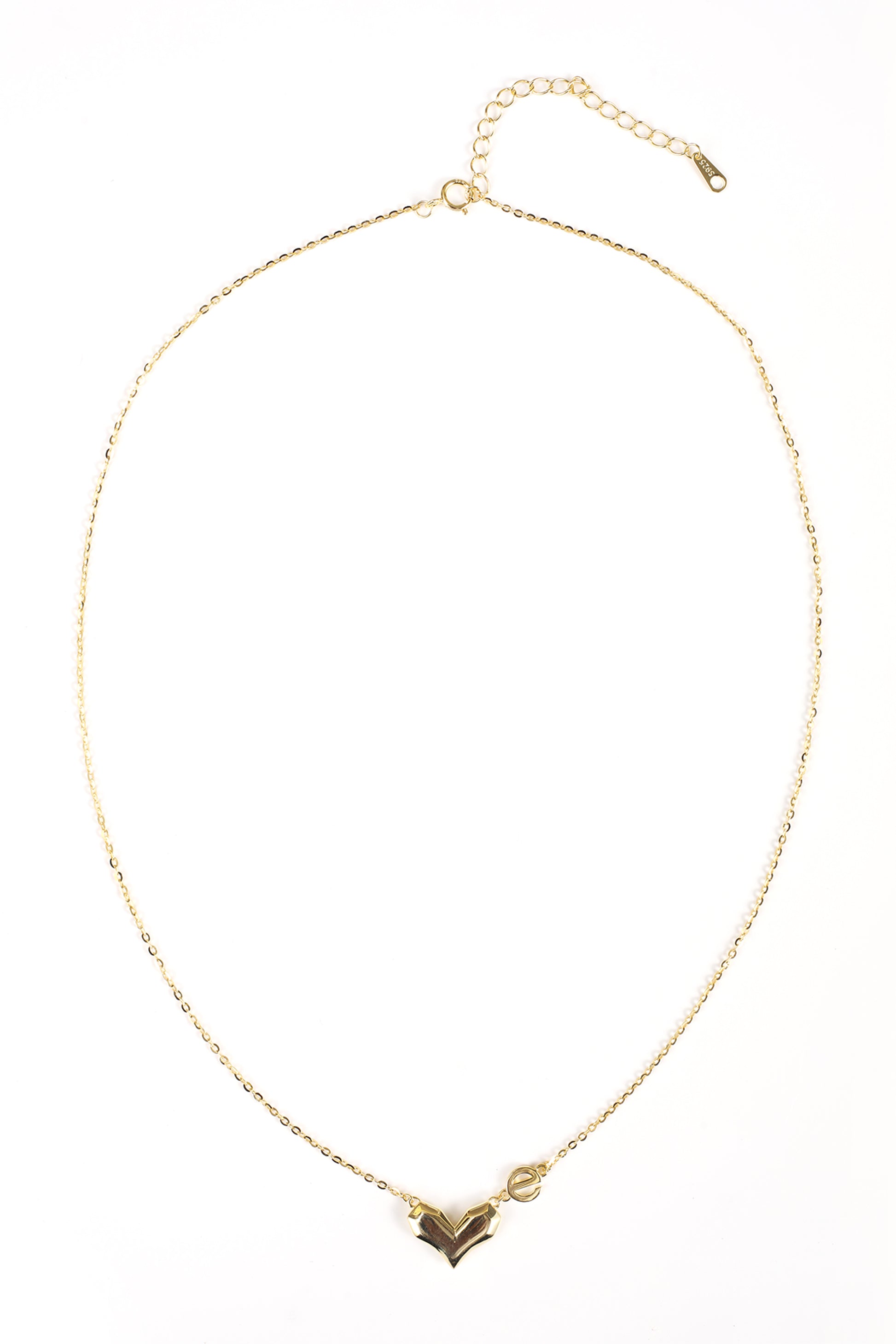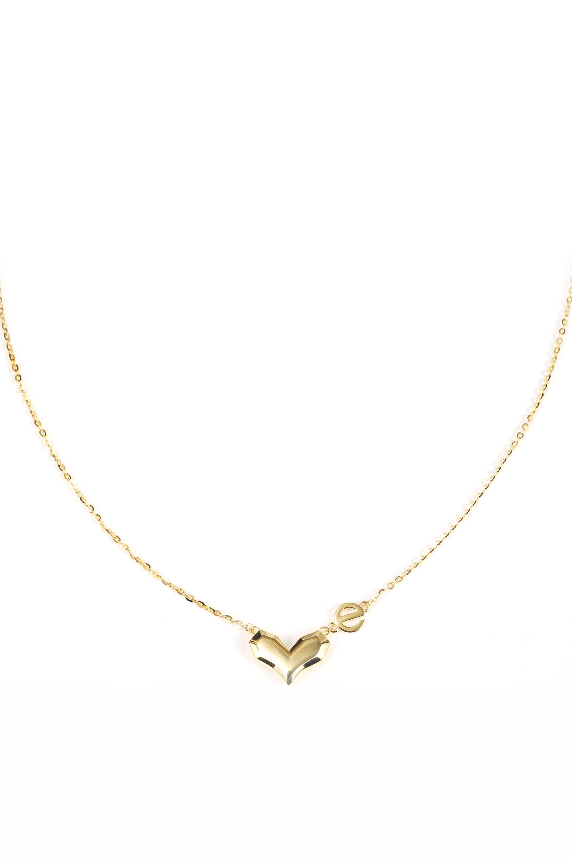 Introducing our chic "Golden Classic Heart" pendant, a trendy favorite in 925 silver. This unique geometric design features a subtle golden heart with an "e," offering versatility to effortlessly enhance any outfit with a touch of elegance.
