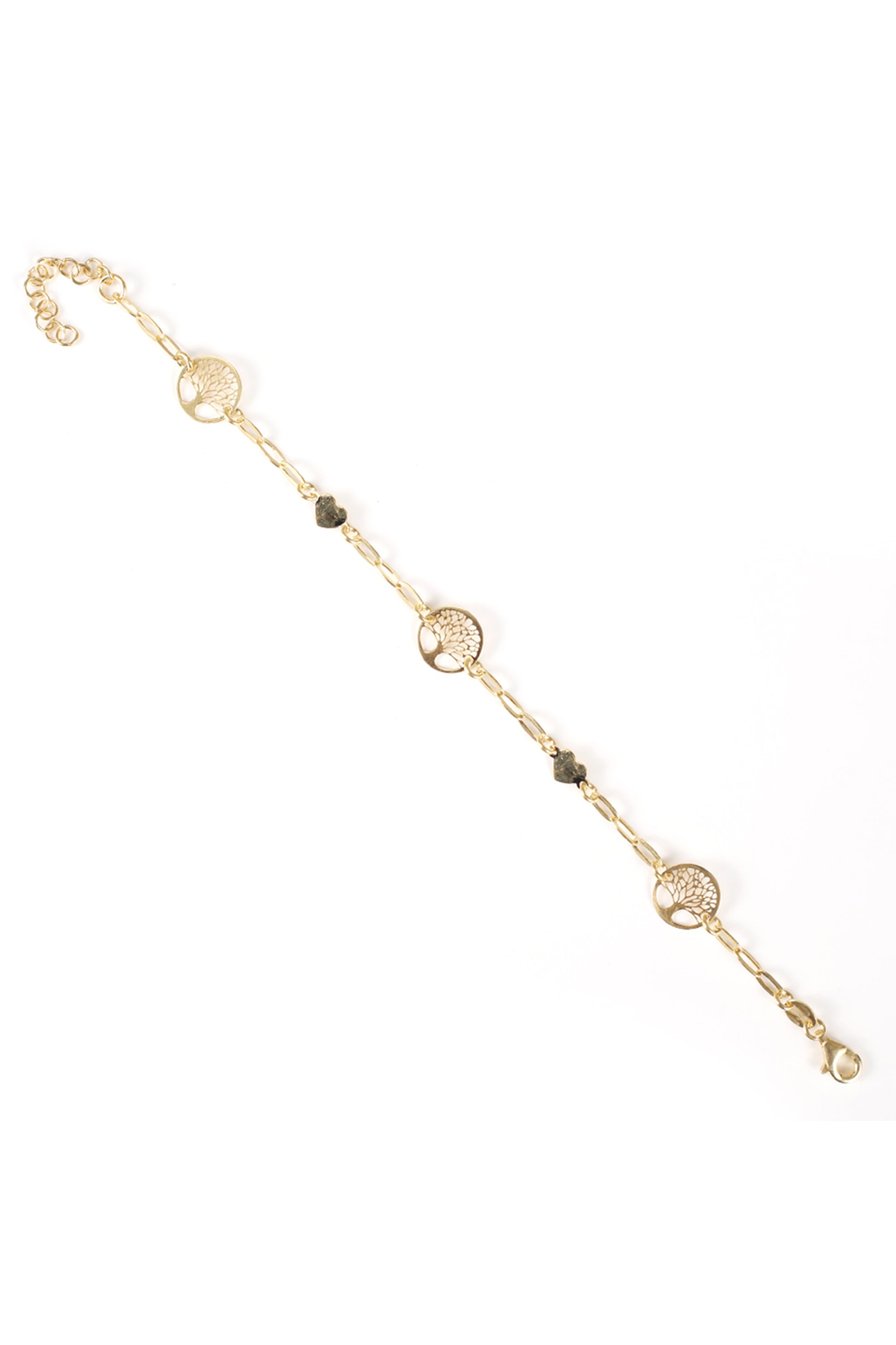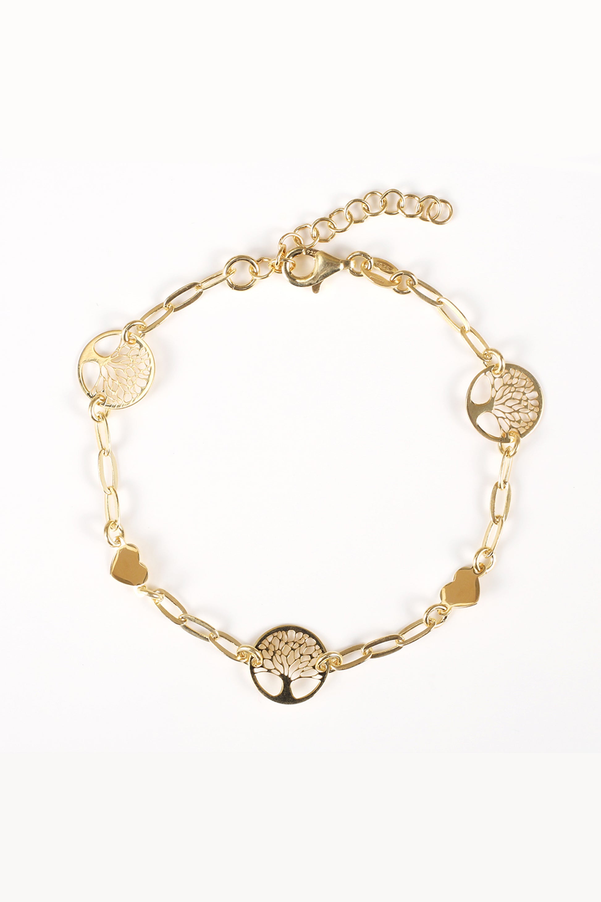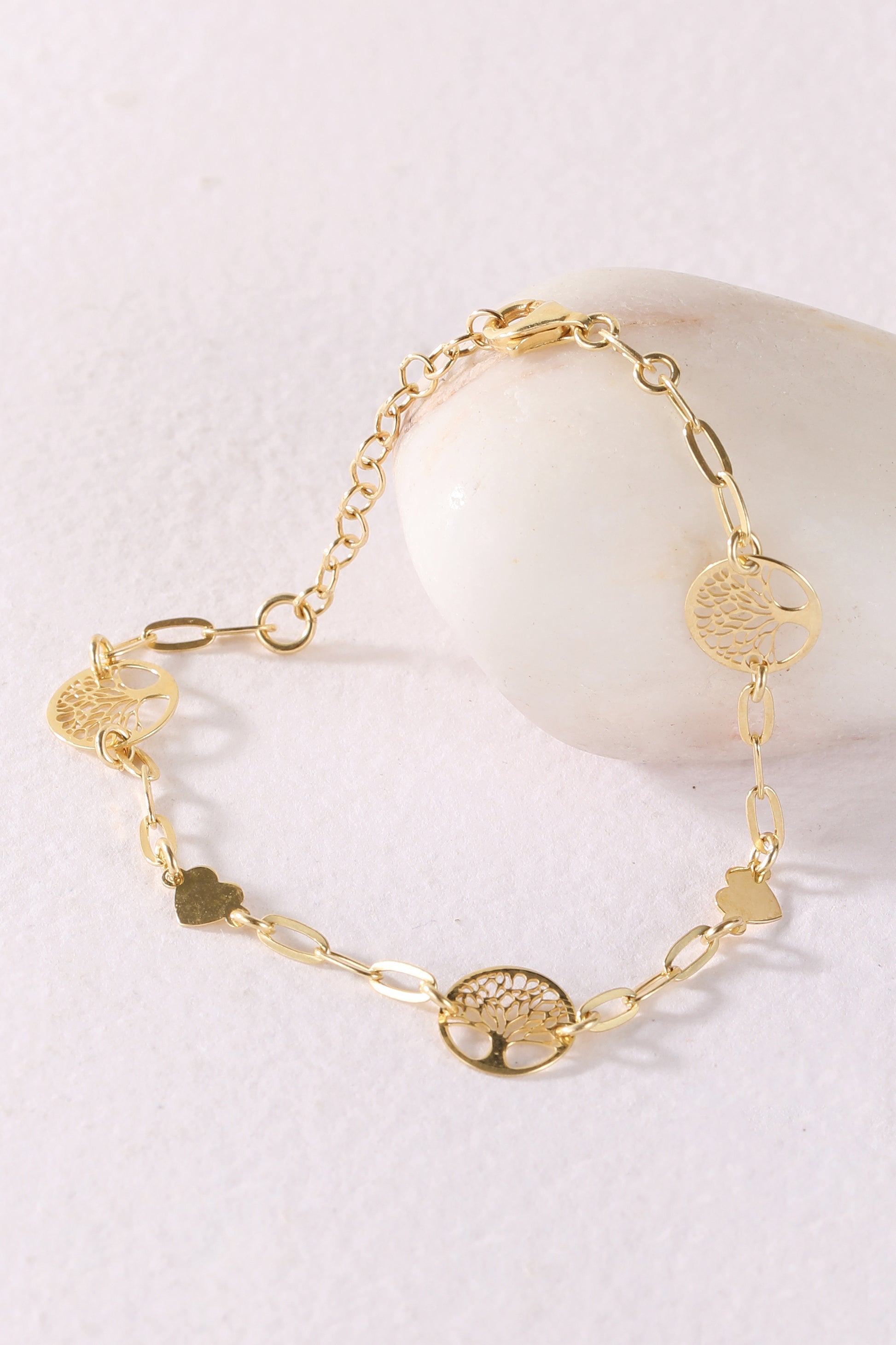Introducing our "Golden Grove" Sterling Silver Bracelet, a minimalist marvel featuring three spaced tree figures, a dainty heart center, and a delicate link chain. Embrace timeless elegance with this trendy and chic accessory.