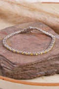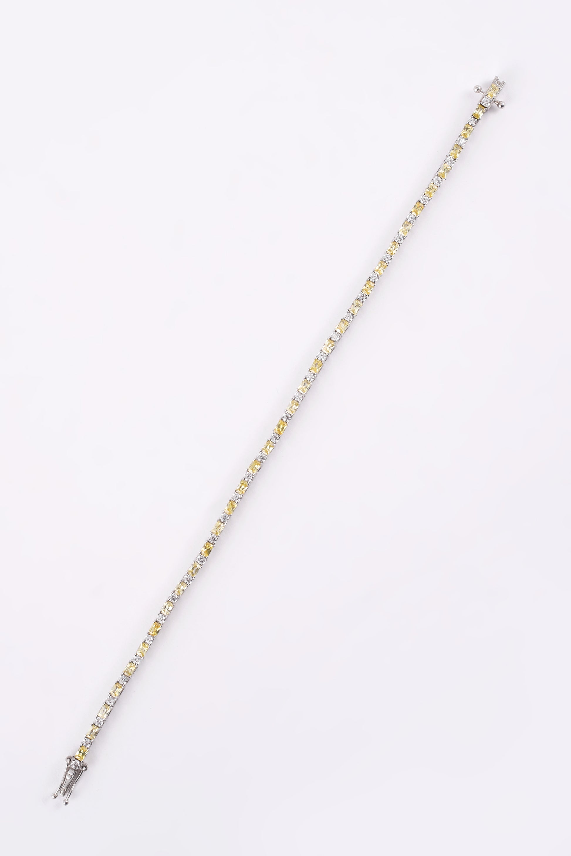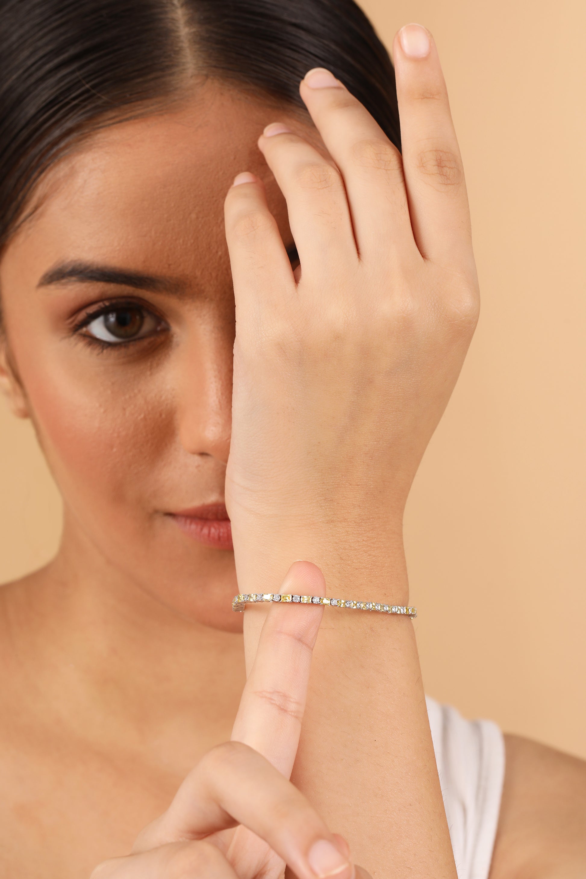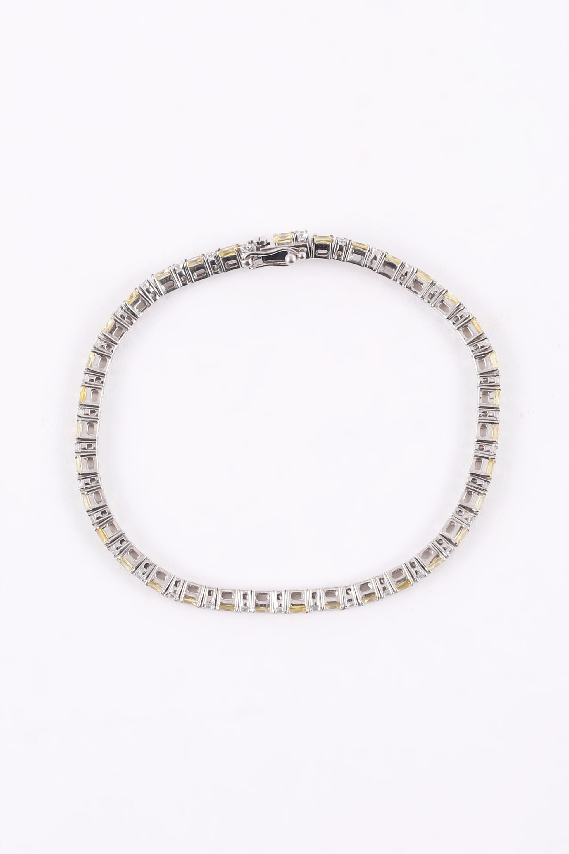Styling Tip- The mini yellow and white tennis bracelet is ideal for adding subtle luxury to your look. Its sleek design makes it perfect for stacking with other delicate bracelets or a watch, while the cool yellow tones lend a sophisticated touch. For a polished appearance, pair it with outfits in earth tones or pastels, allowing the bracelet to softly complement your overall style. It works beautifully for both casual and formal settings, giving just the right hint of elegance without overpowering your look.