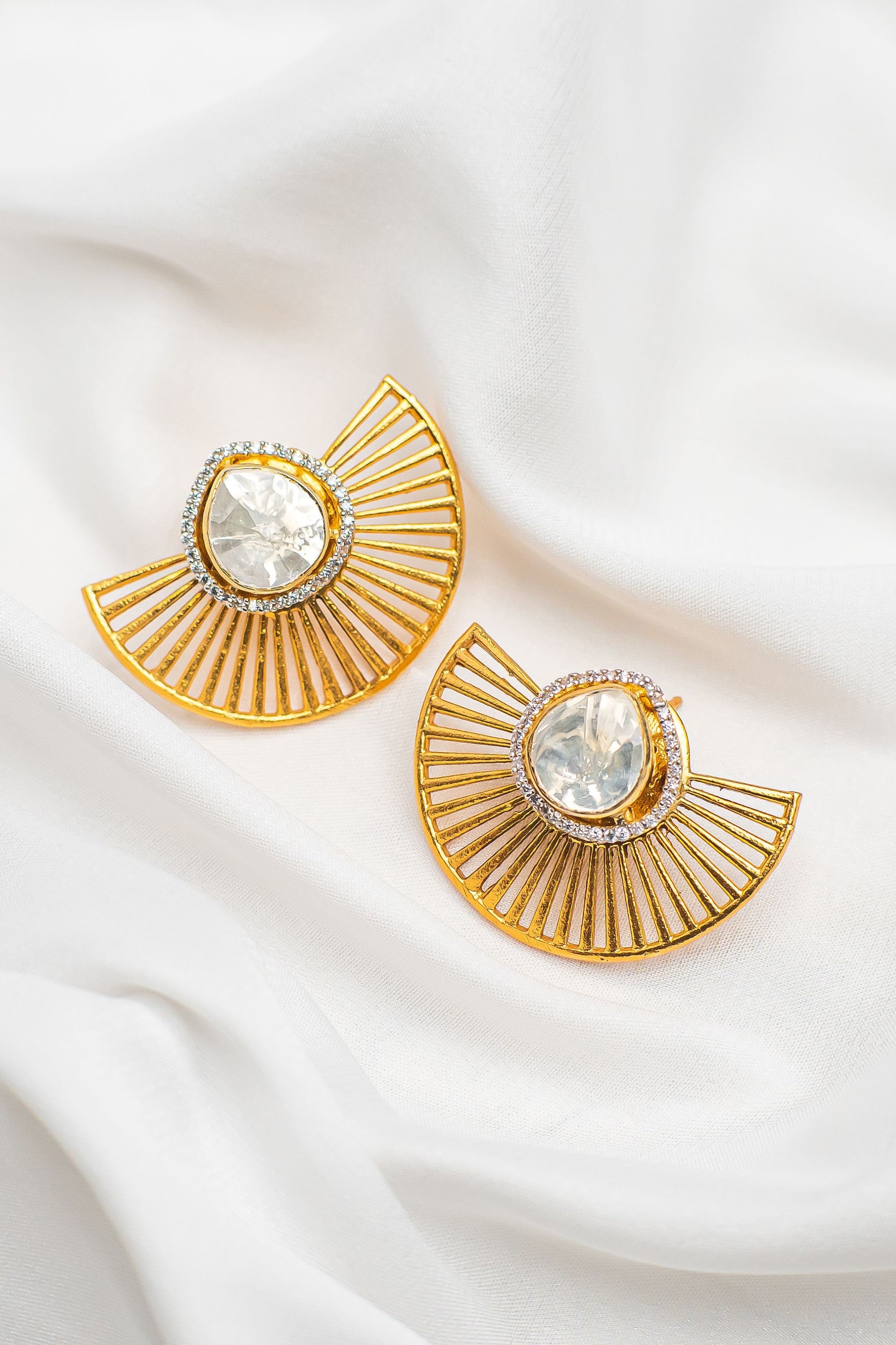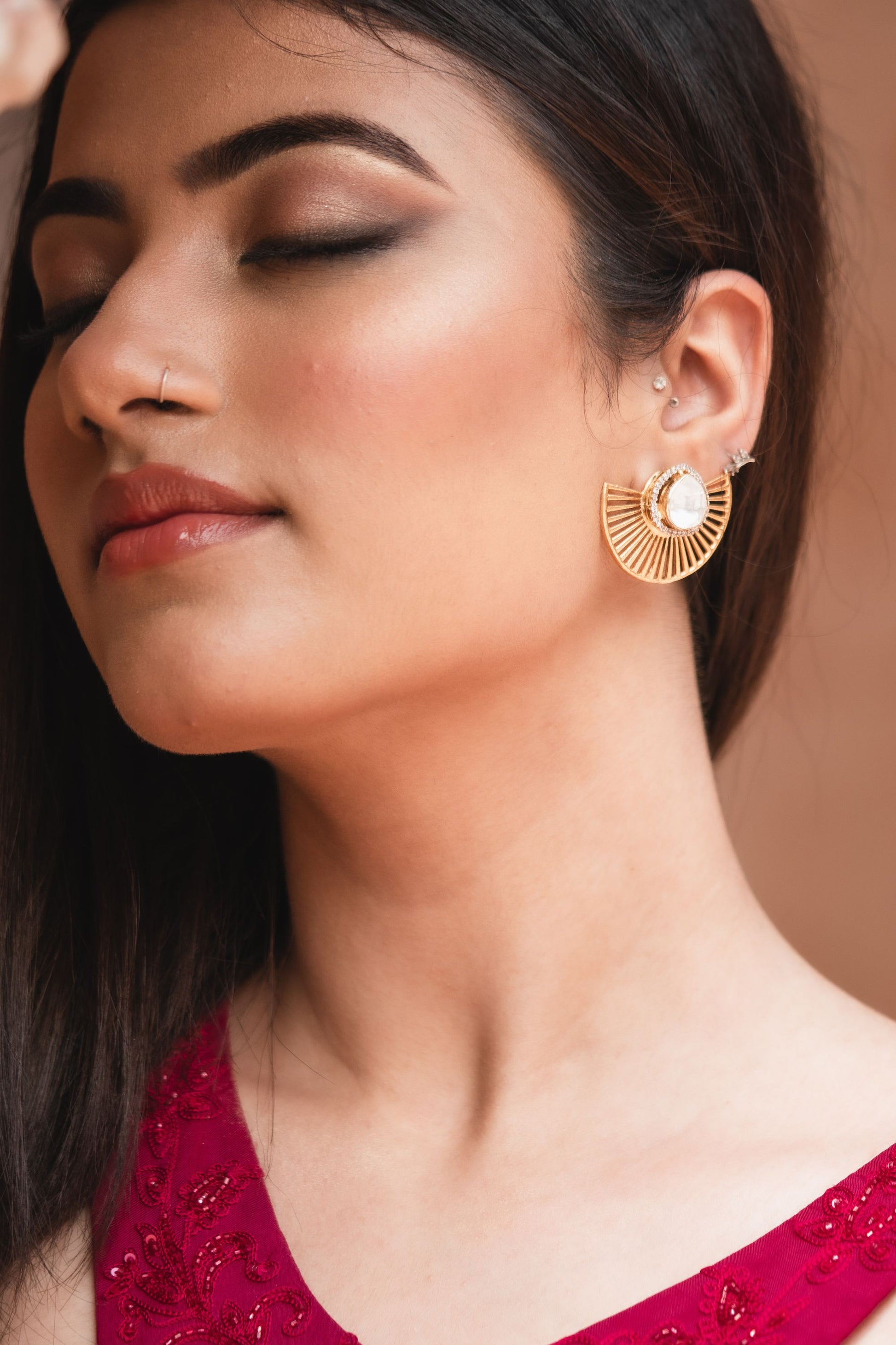 Styling Tip-Ā The Indra earring, a blend of femininity and boldness, complements Indian attire like a traditional saree and adds opulence to western wear like an elegant black dress, making it a versatile statement piece.