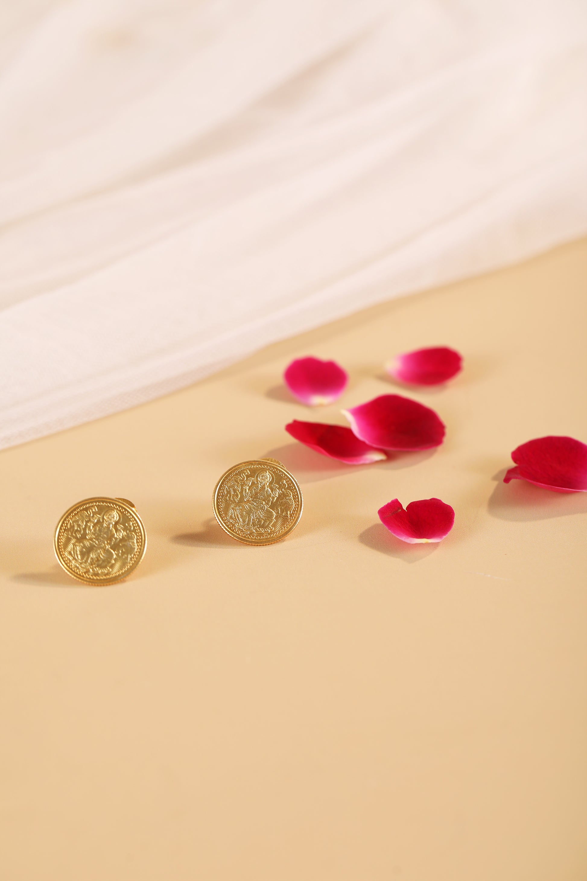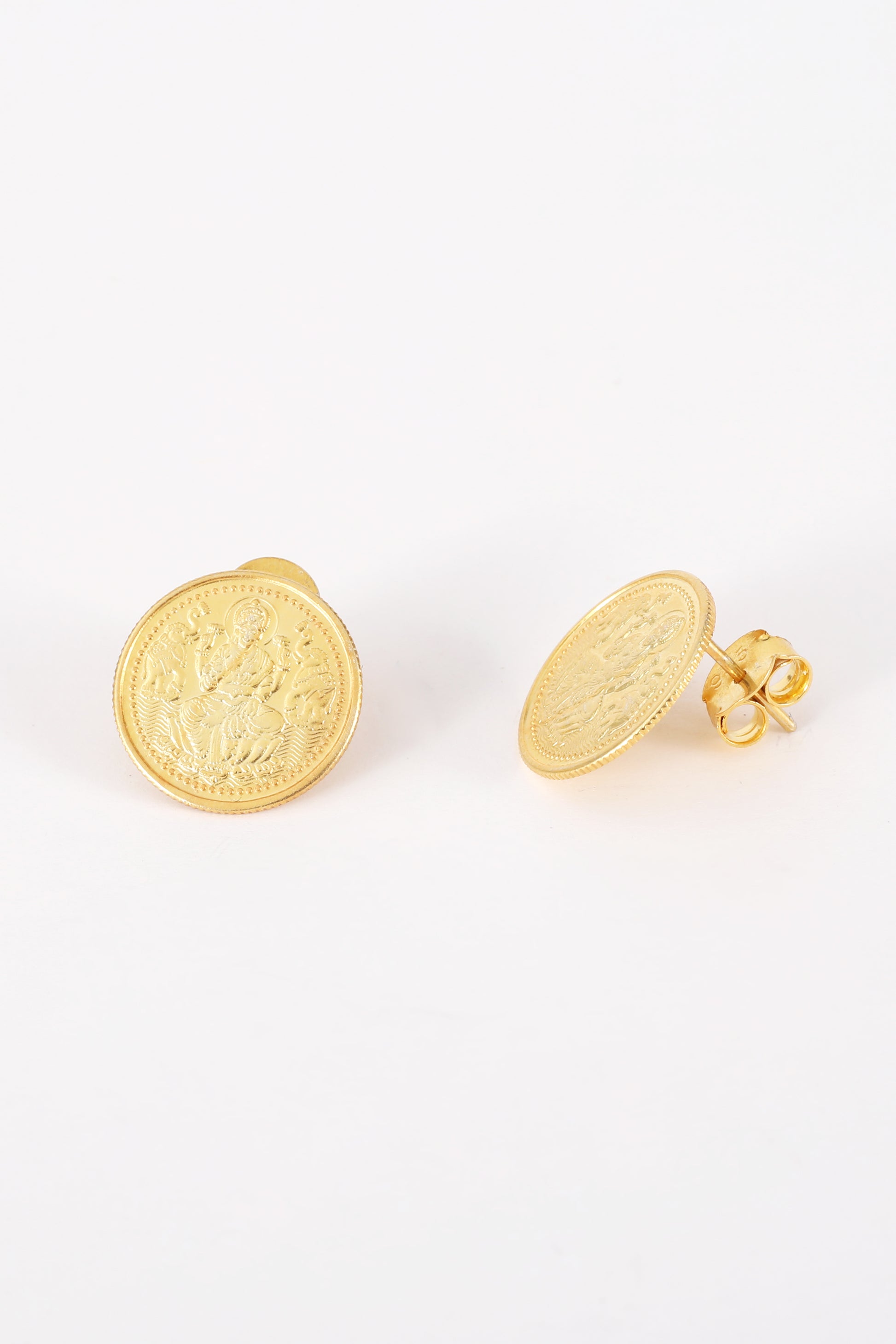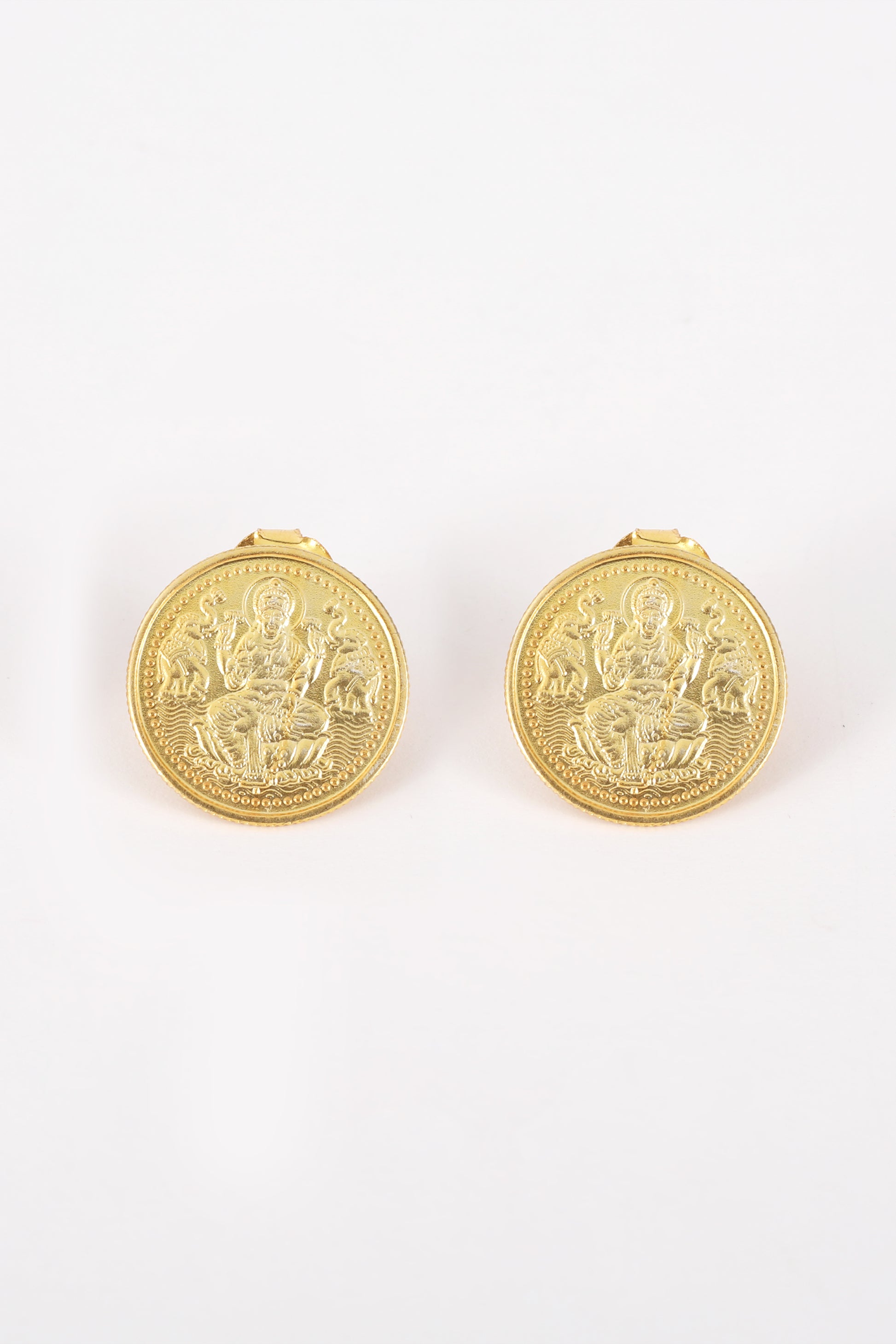 Elevate your Dhanteras with our 24K gold-plated silver Goddess Laxmi coin earrings. Combining tradition and style, these treasures embody the timeless essence of 'old is gold.' Perfect for celebrating prosperity with a touch of elegance.