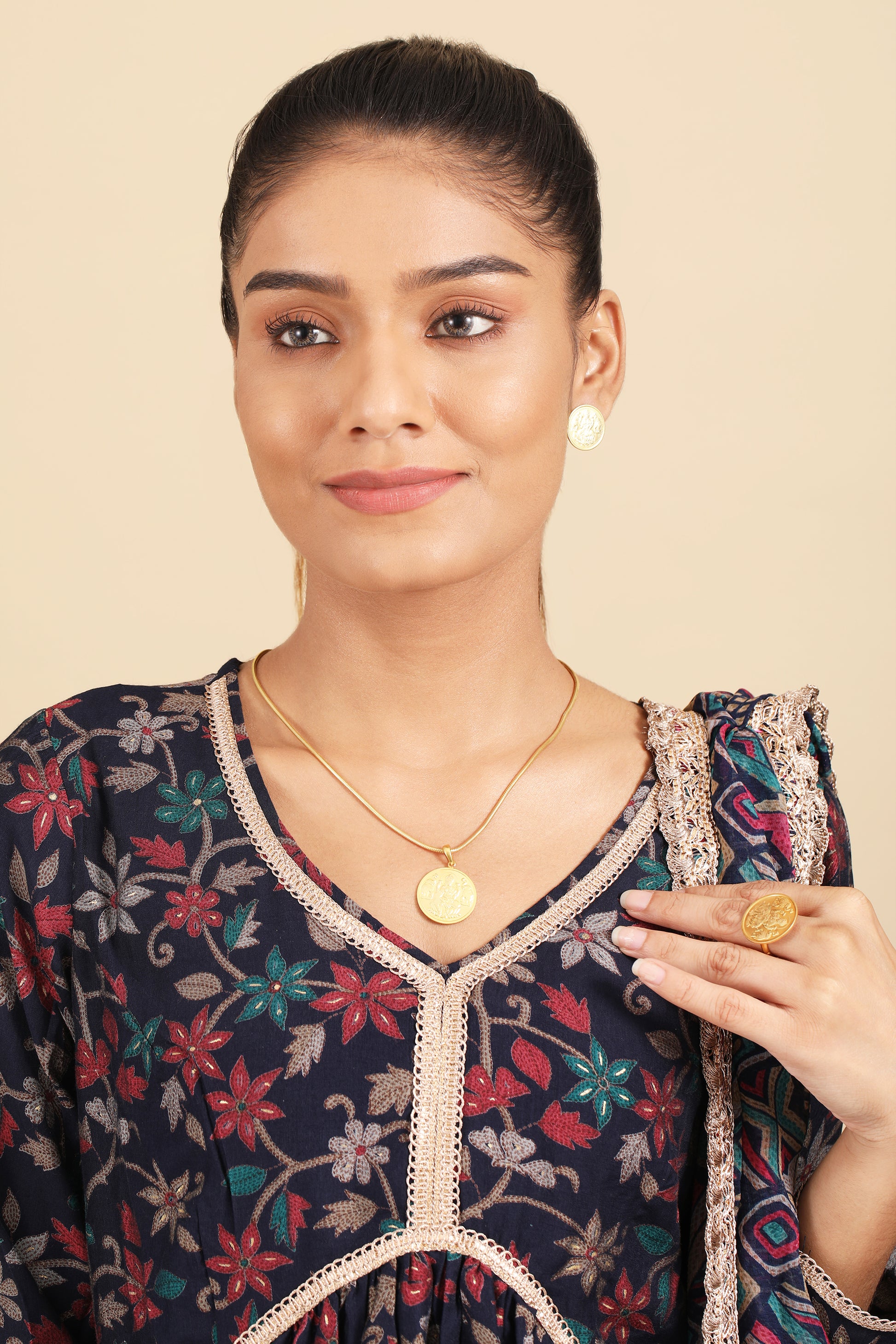 Styling Tip- Dhanteras is a time for celebrating tradition. Wear your silver coin pendant and golden chain with a traditional saree, lehenga, or an ethnic outfit of your choice. The combination of modern and traditional elements in your jewelry will beautifully complement your attire.