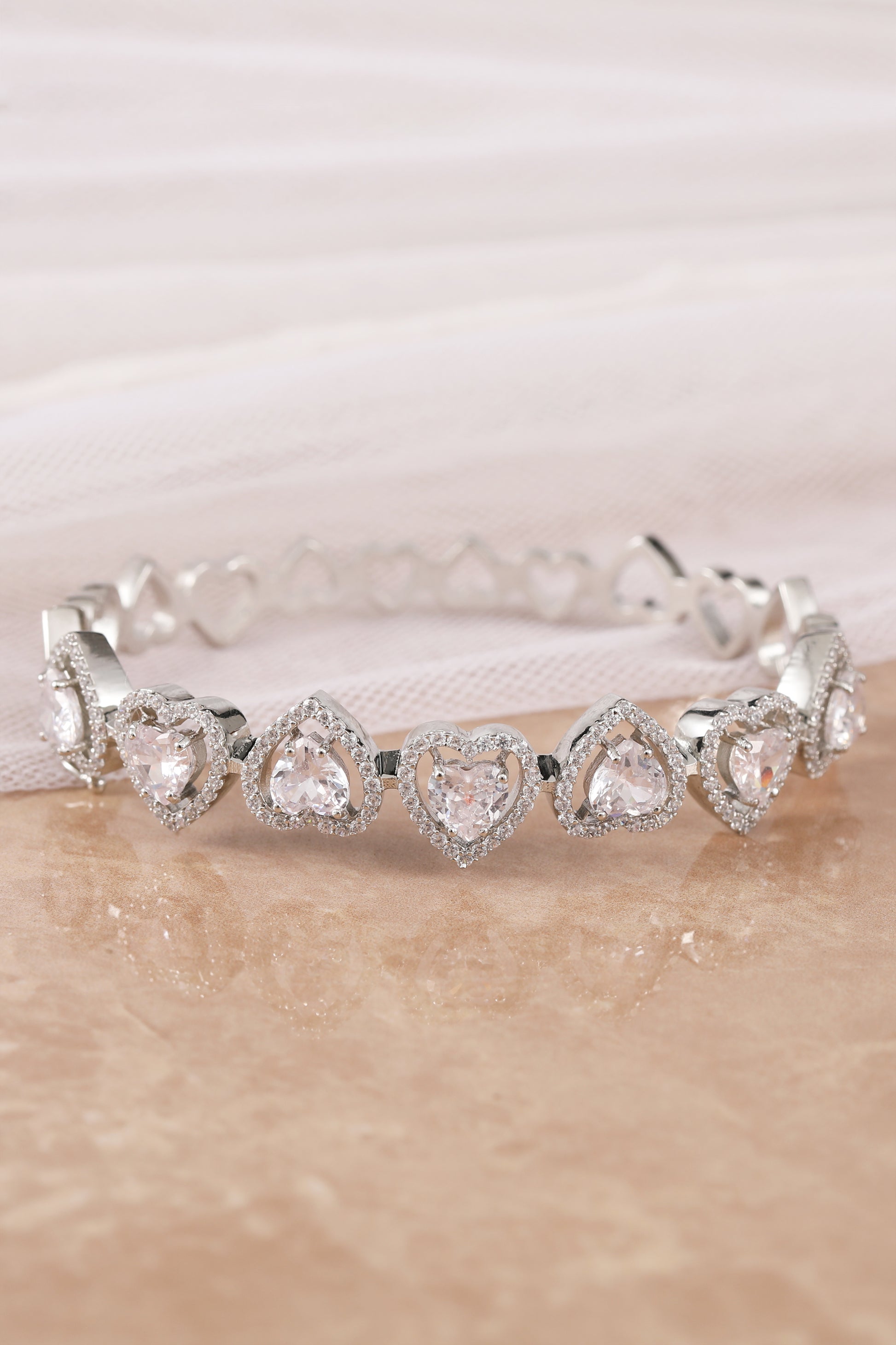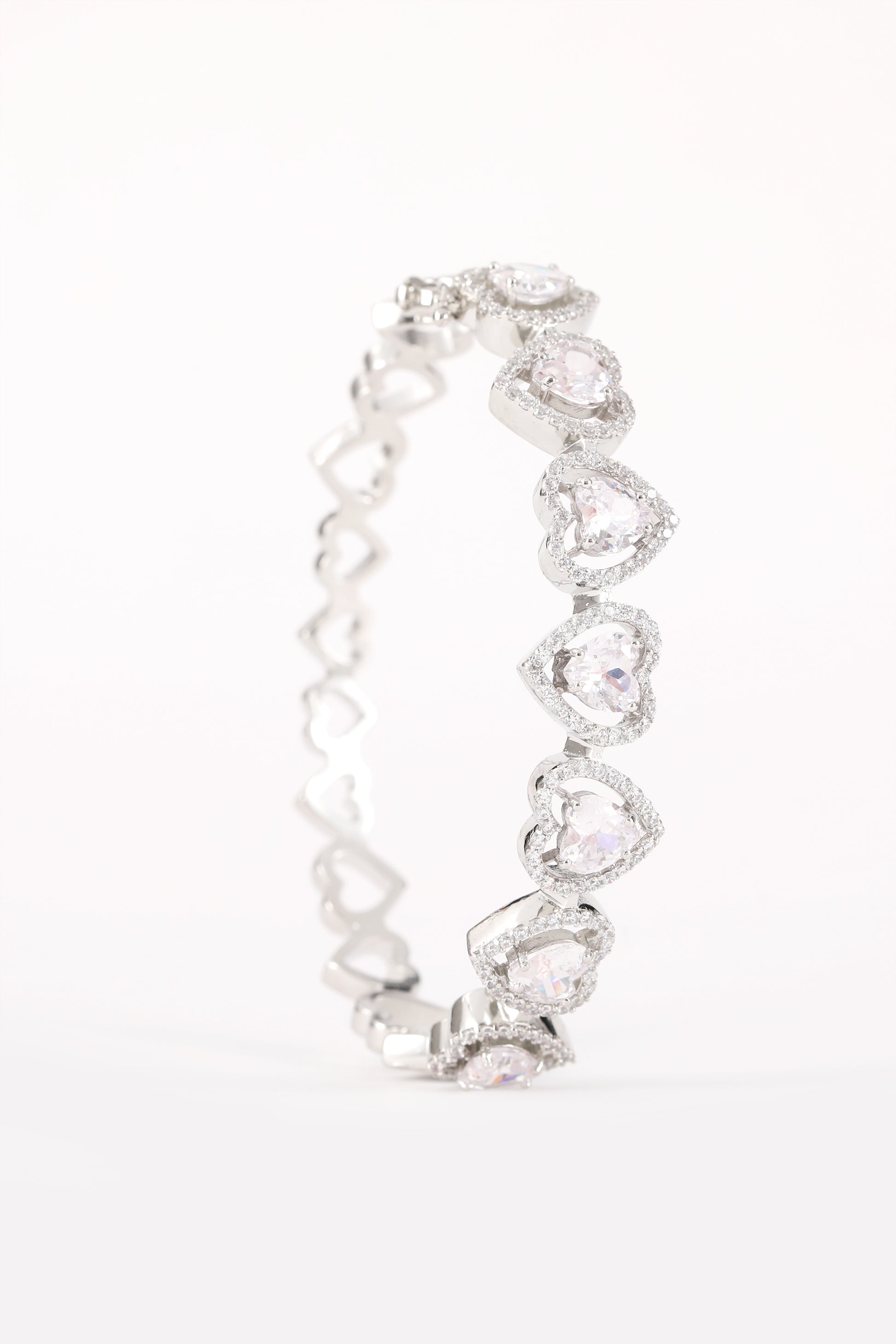 Introducing the "LoveLink Silver Bracelet," a timeless expression of love. Crafted in 925 sterling silver, its openable design ensures a perfect fit for all. Adorned with a chain of hearts and coated in white rhodium for everlasting elegance.