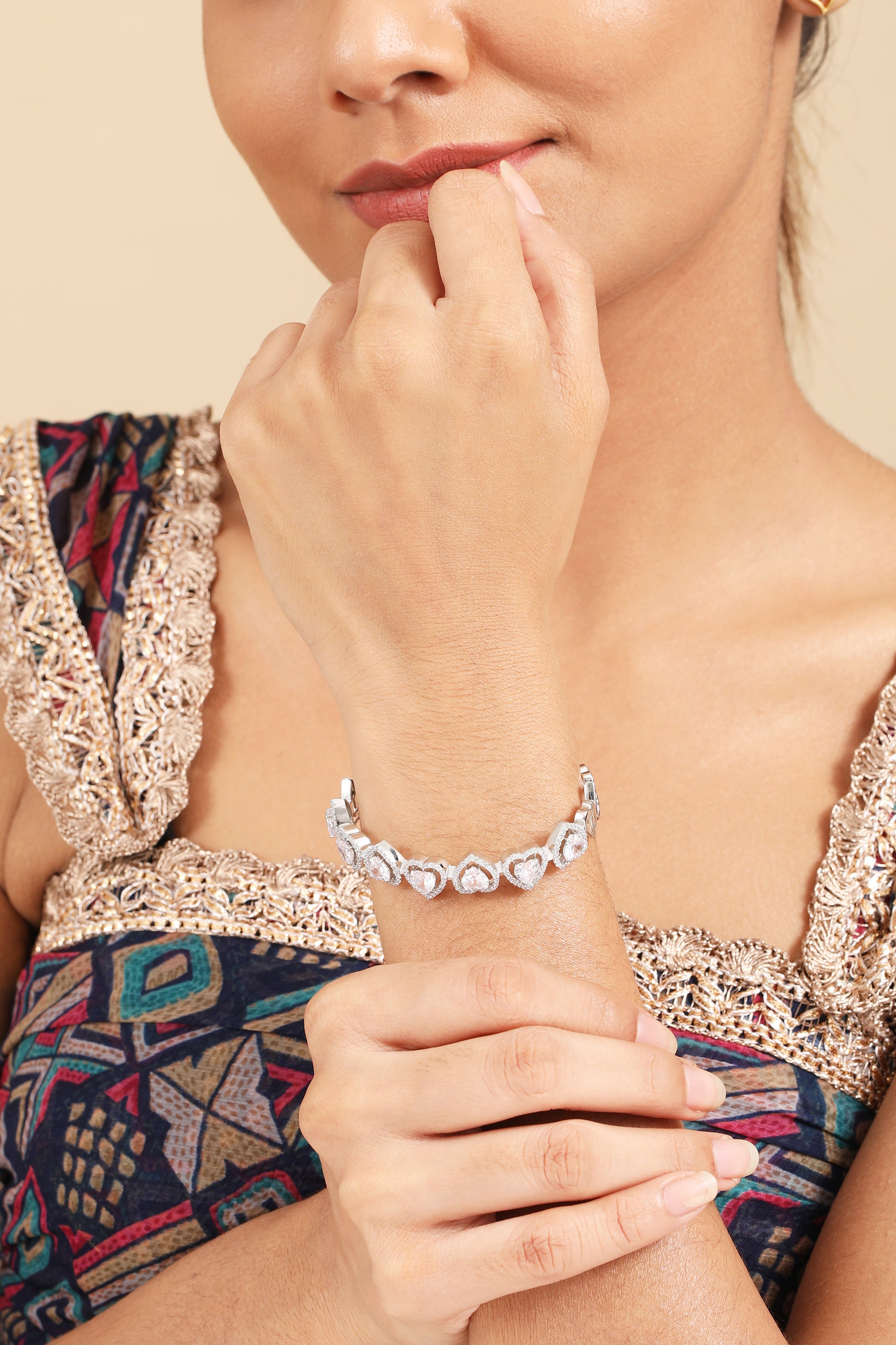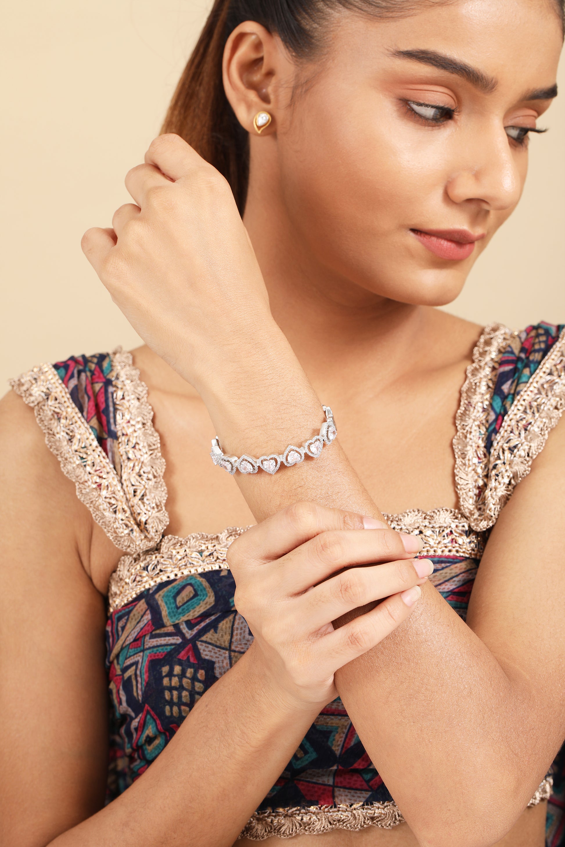 Styling Tip- Elevate your party look with the "Lovelink Silver Bracelet," a stunning heart-link design. Pair it with a sleek cocktail dress for a touch of romance. A perfect Valentine's gift for your beloved.
