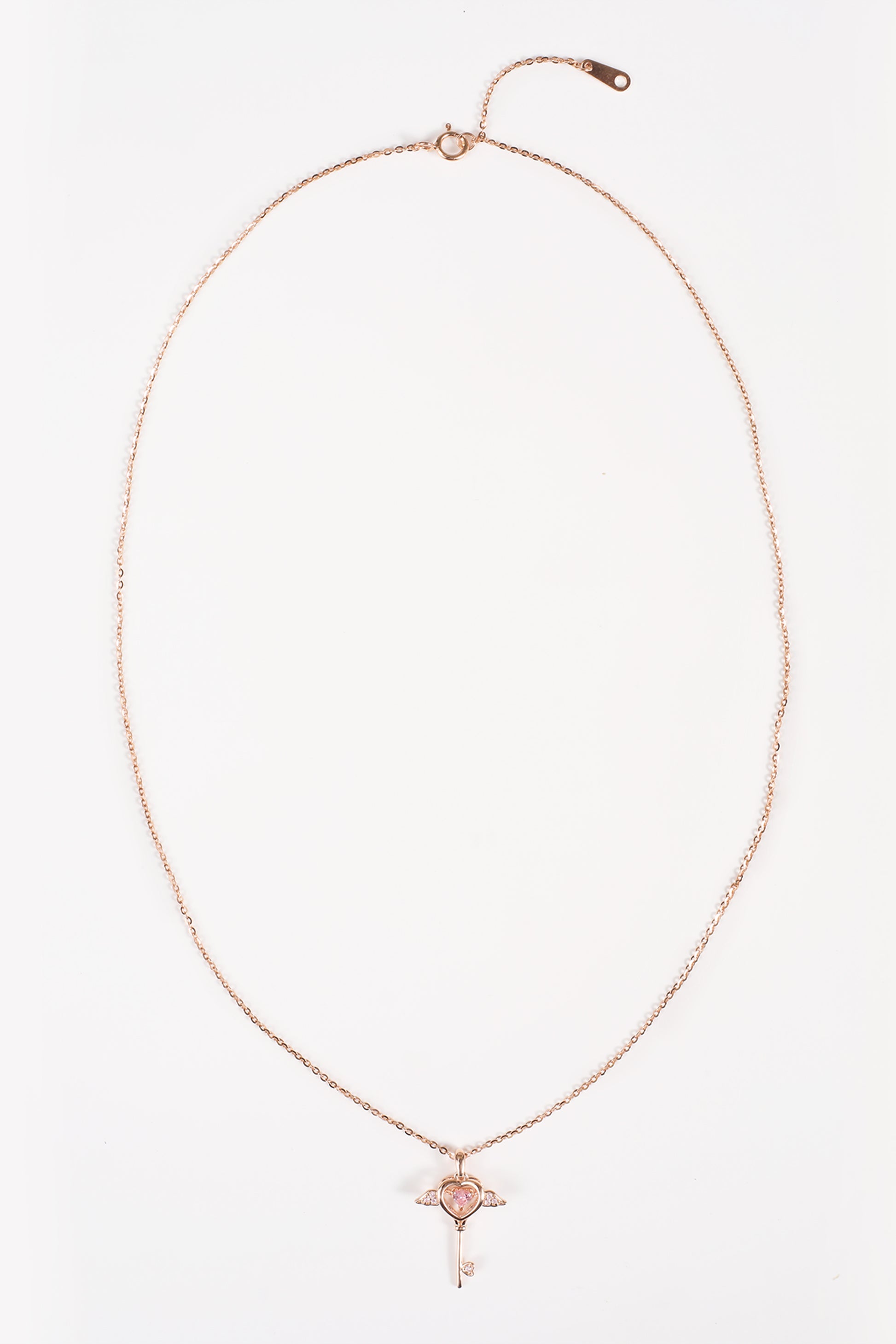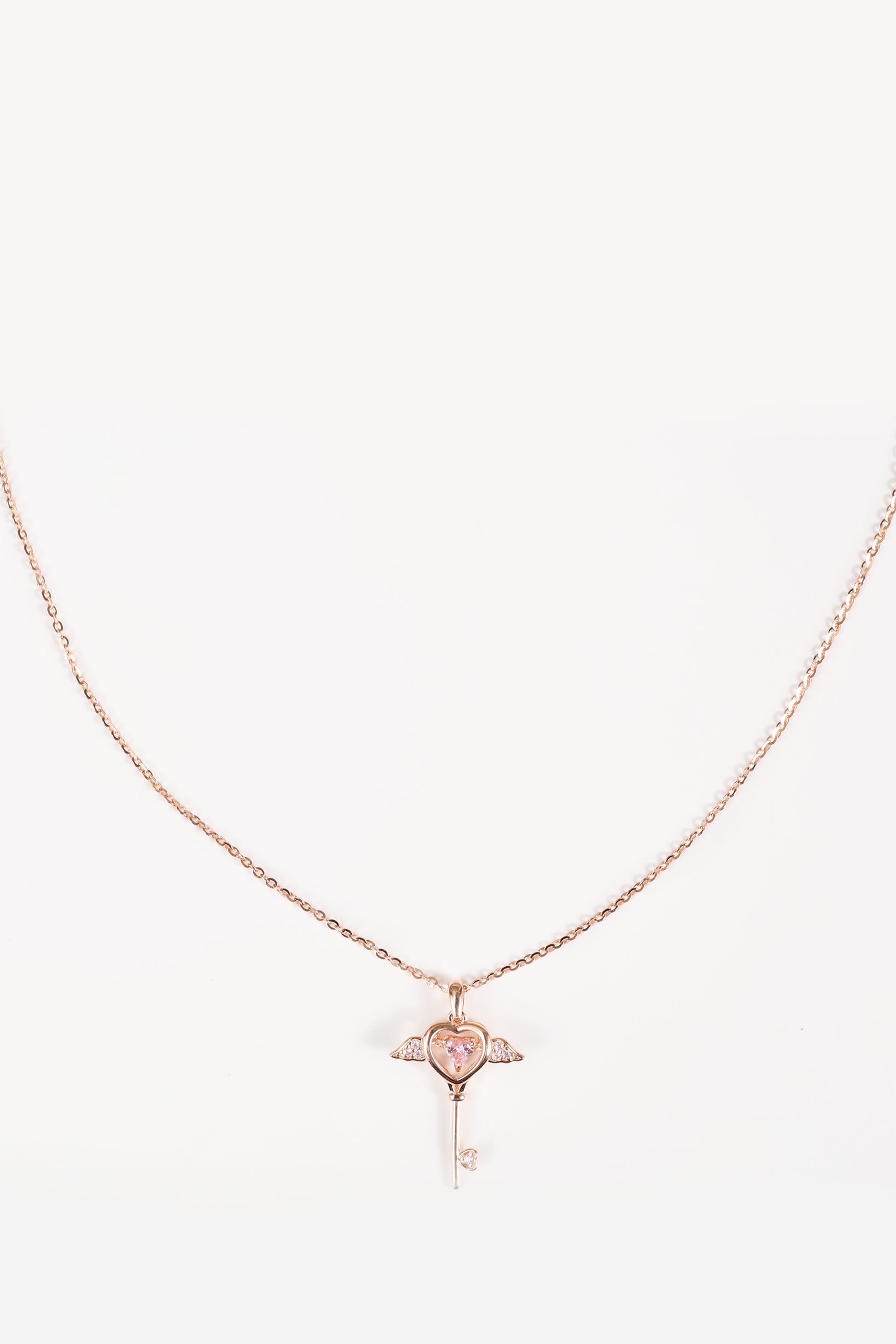 Unlock timeless love with the "LoveLock Pendant." This exquisite key-shaped design, adorned with wings and a dangling heart inside, captures the essence of eternal love, making it the perfect symbol of commitment.