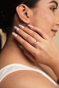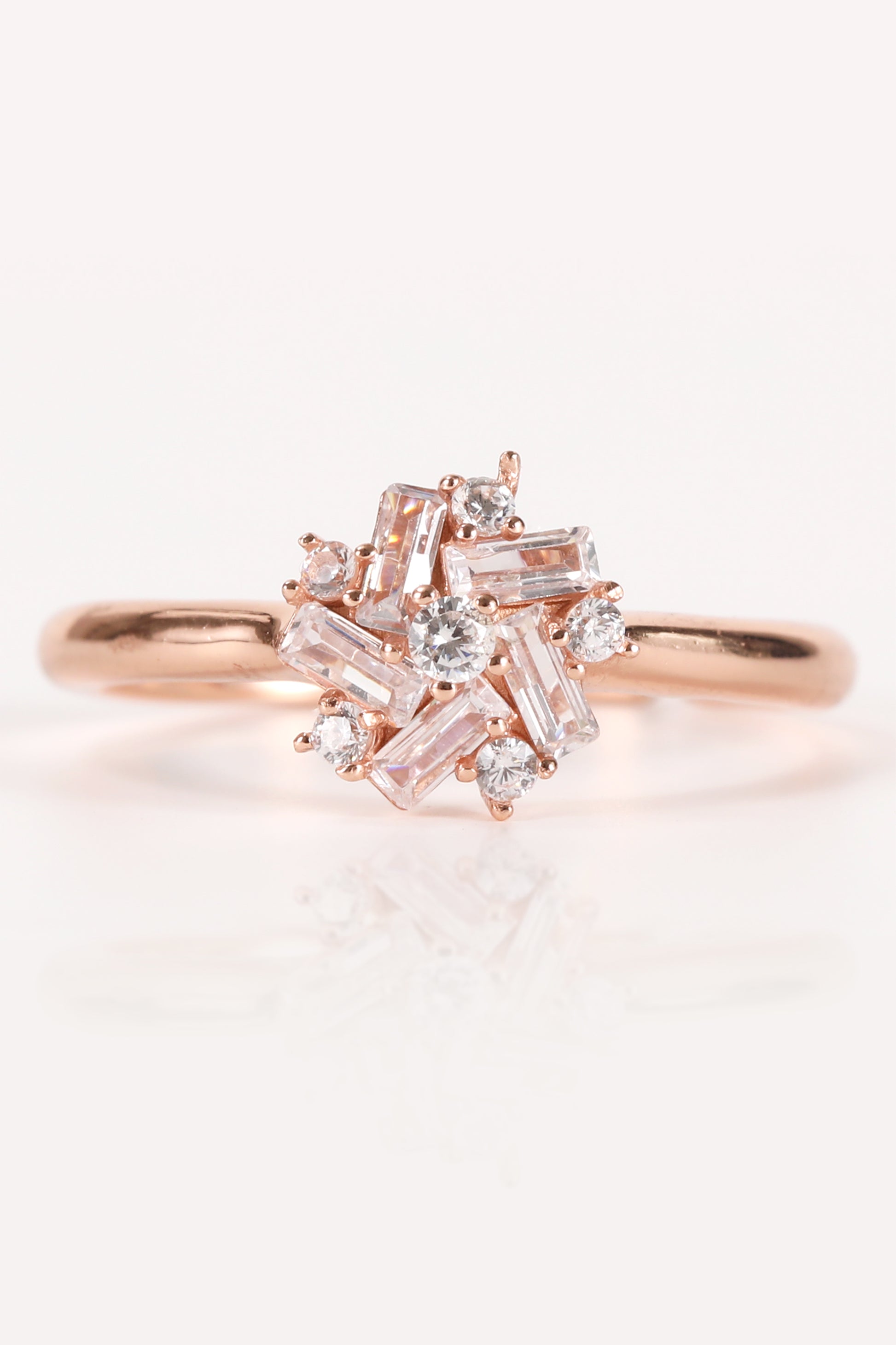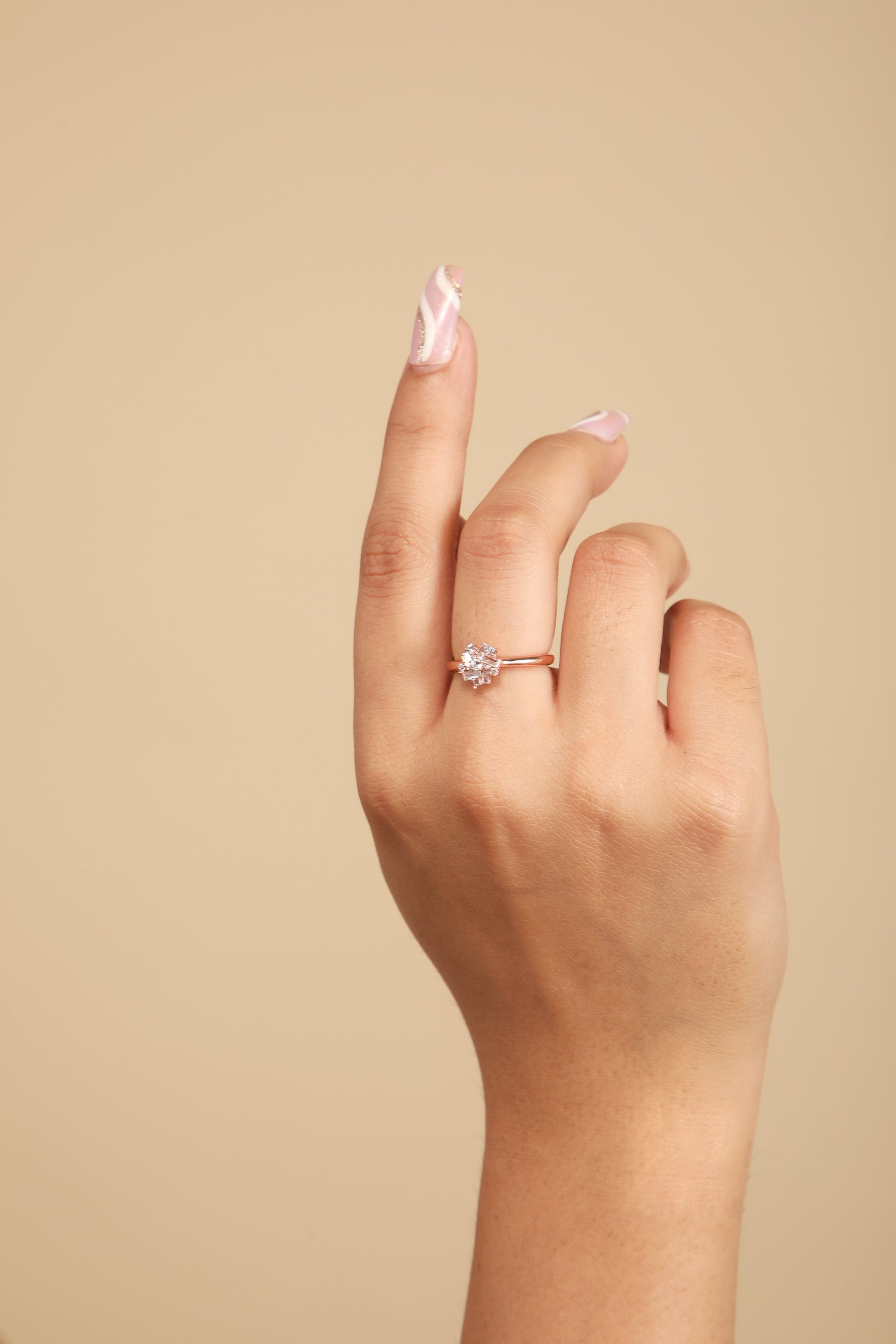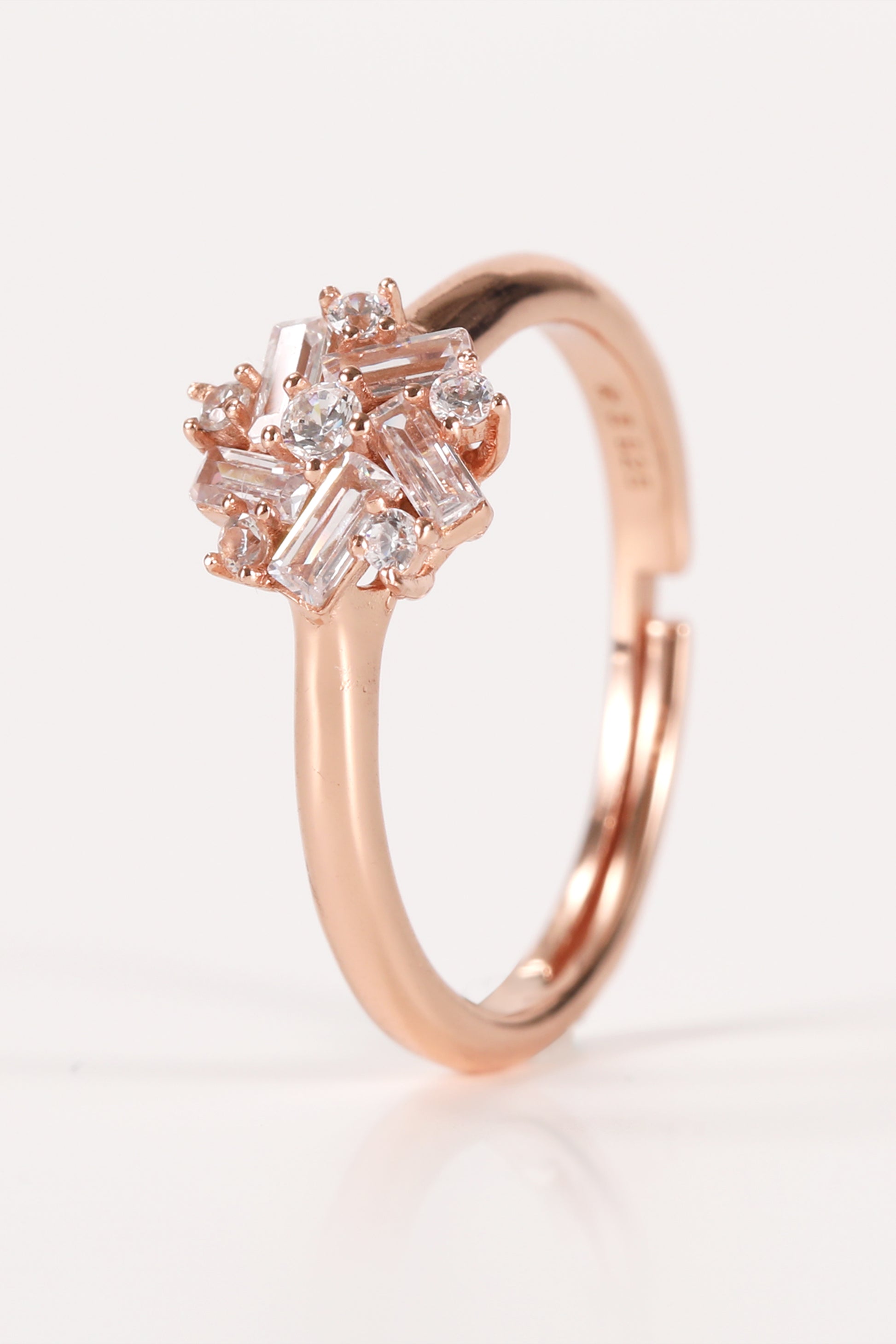 Styling Tip- Elevate any outfit with the Luna silver ring in rose gold. Its exquisite crystal flower detail adds elegance. Versatile and adjustable, it complements both casual and formal attire beautifully.
